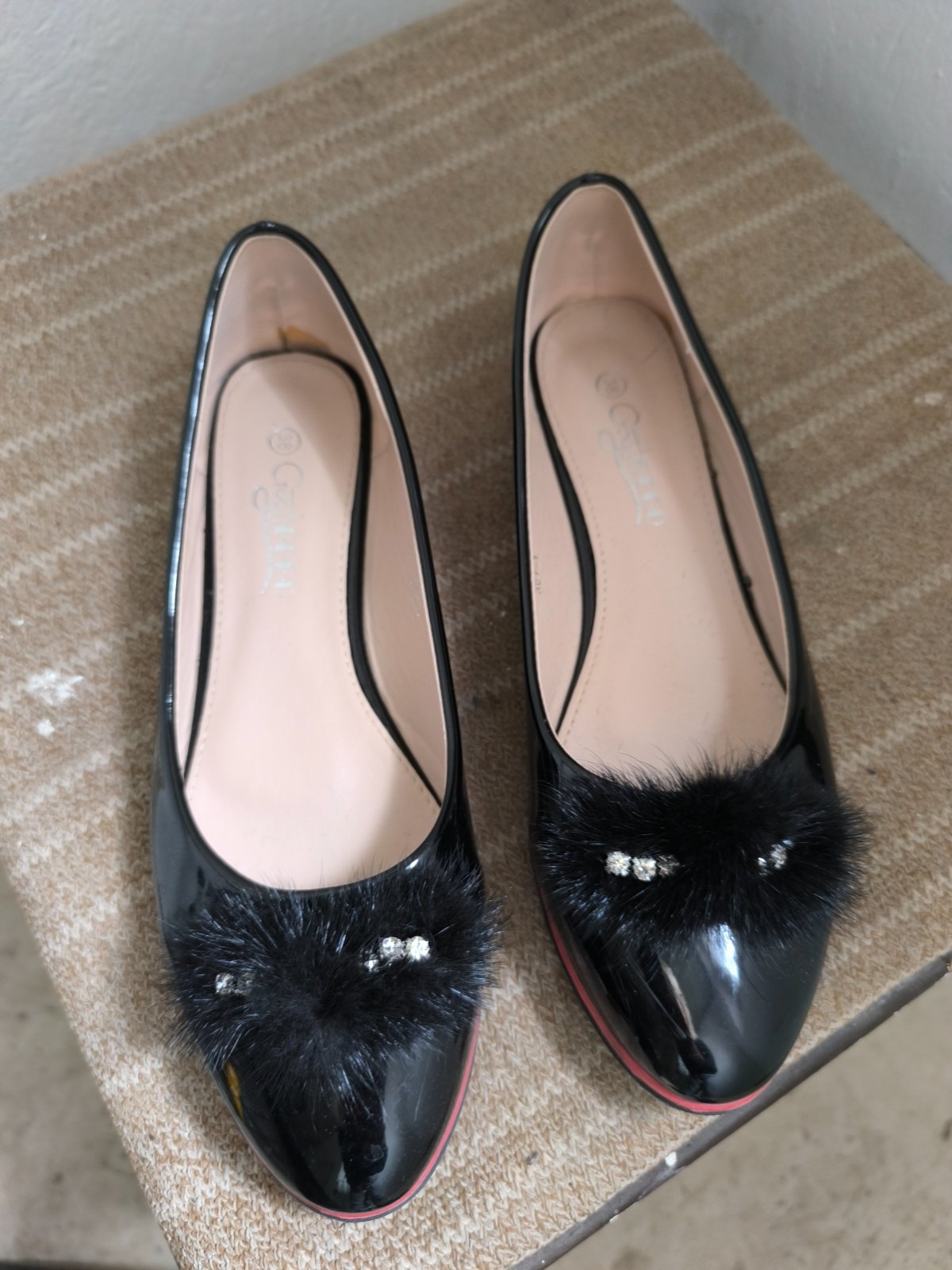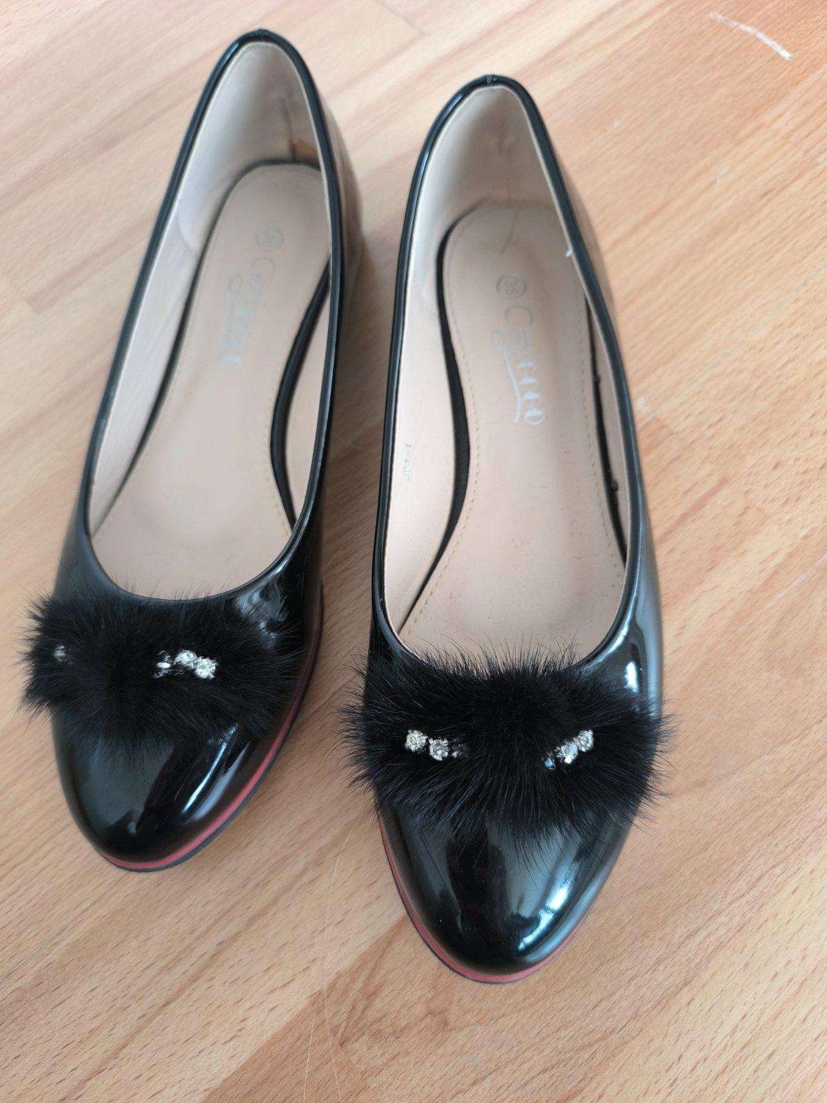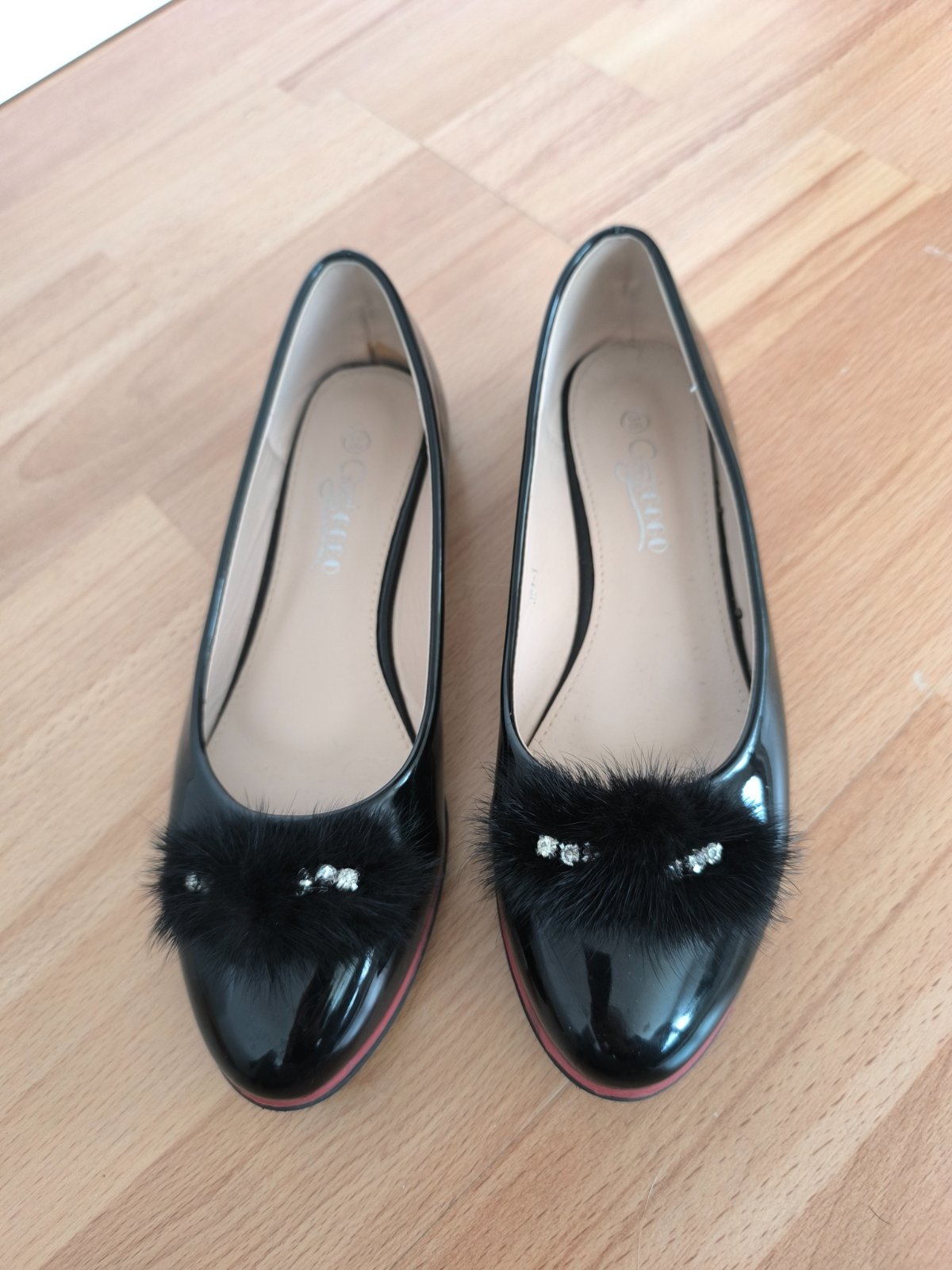 Čierne, lakované balerínky.Raz obuté