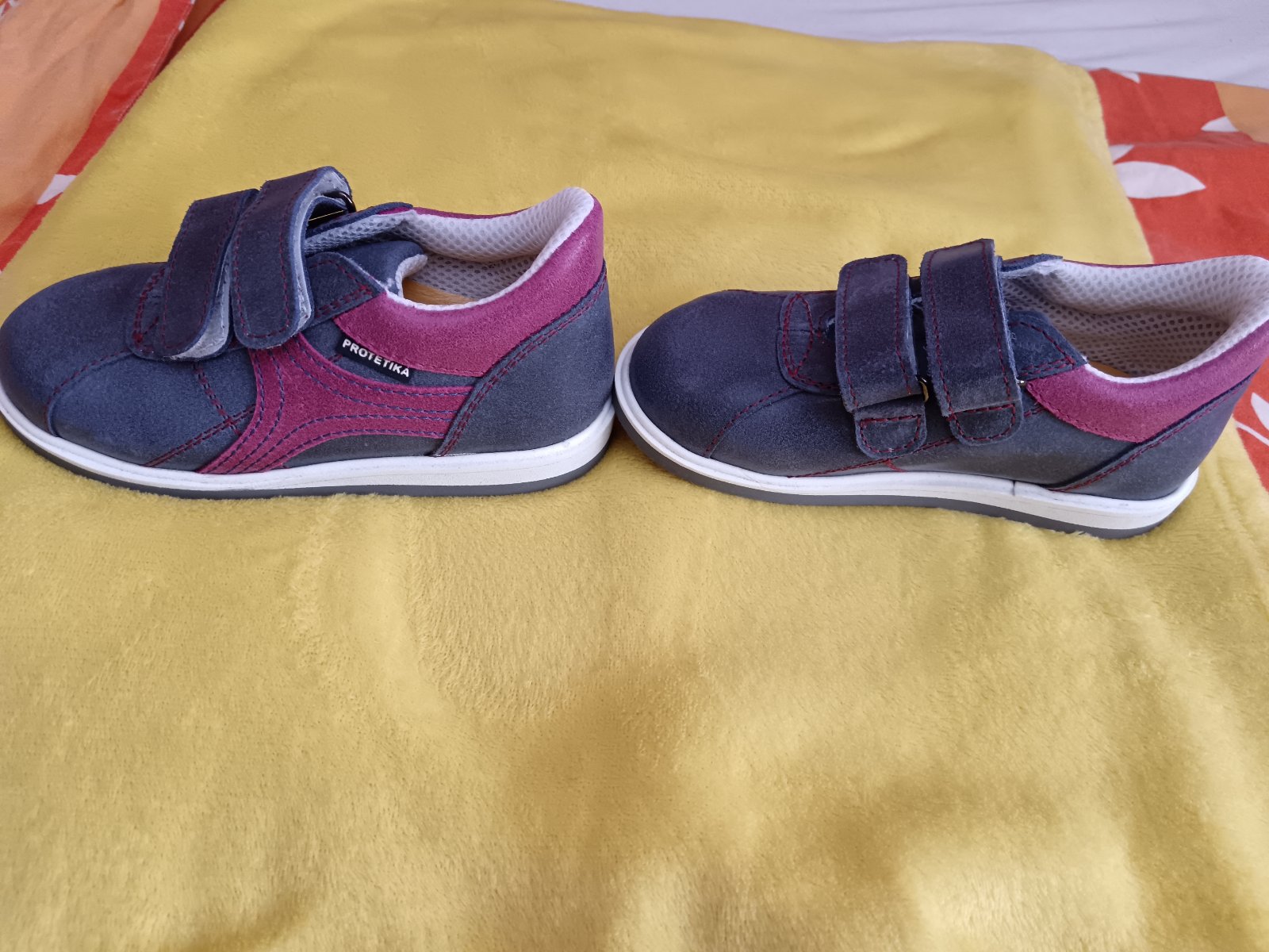 Posúvam nové, nenosené topánočky zn. Protetika. Veľmi ťažko sa meria vnut.dlzka. Vid foto. Krajcirskym metrom odmerane17,8-17,9cm. Veľkosť je to asi 26-27.