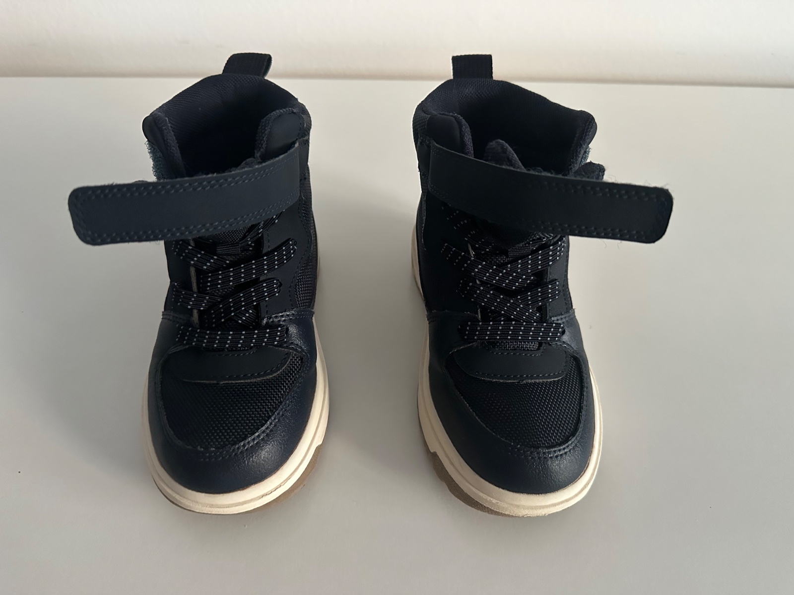 Chlapčenské nepremokavé topánky tmavomodrej farby, veľkosť 28 - vnútorná dĺžka vložky/stielky je 18,5 cm. Obuté cca 3x, sú ako nové (bez akýchkoľvek poškodení). Kupovali sme ich ku koncu sezóny, synček ich nestihol vynosiť.