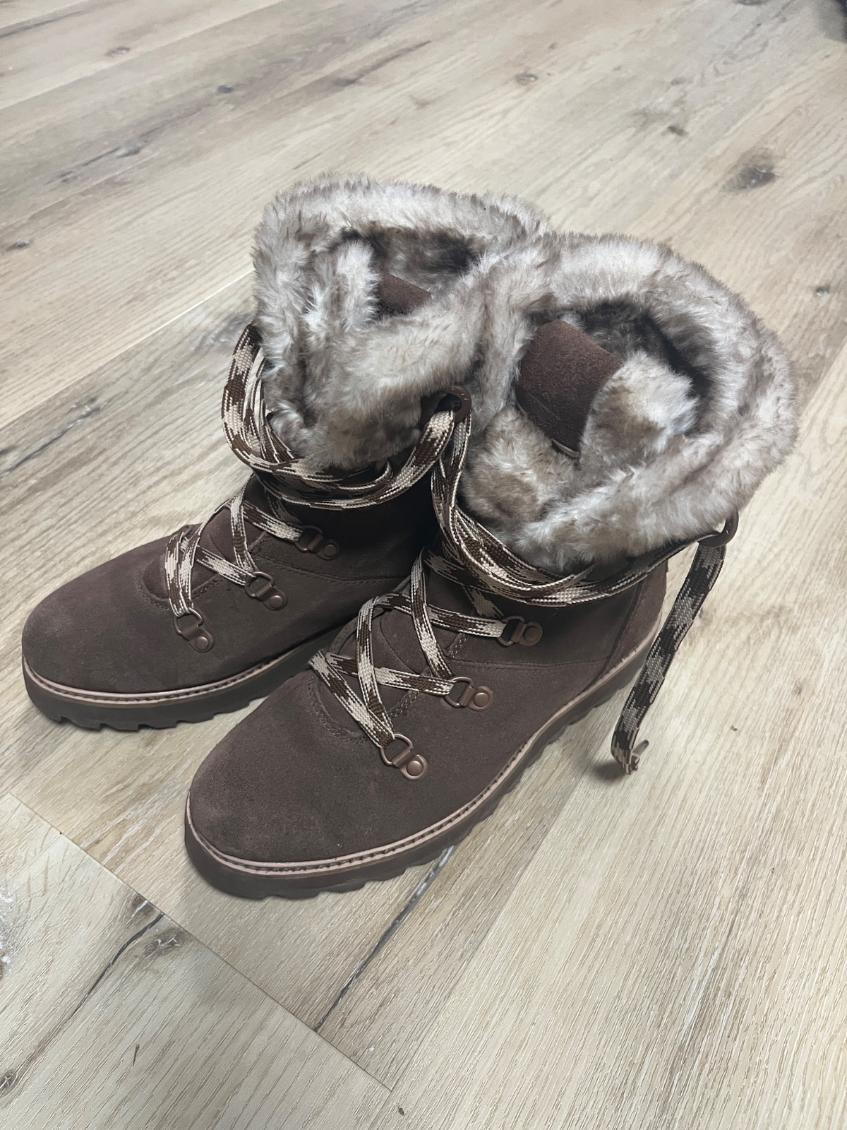Krásne a hlavne teplé baranica aj v predu pri prstoch pár krát obute ako nové ja nevynosim cena predtým 80e teraz cena už s obyčajným poštovným ešte vyše roka v záruke.
