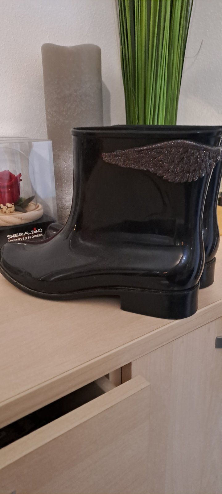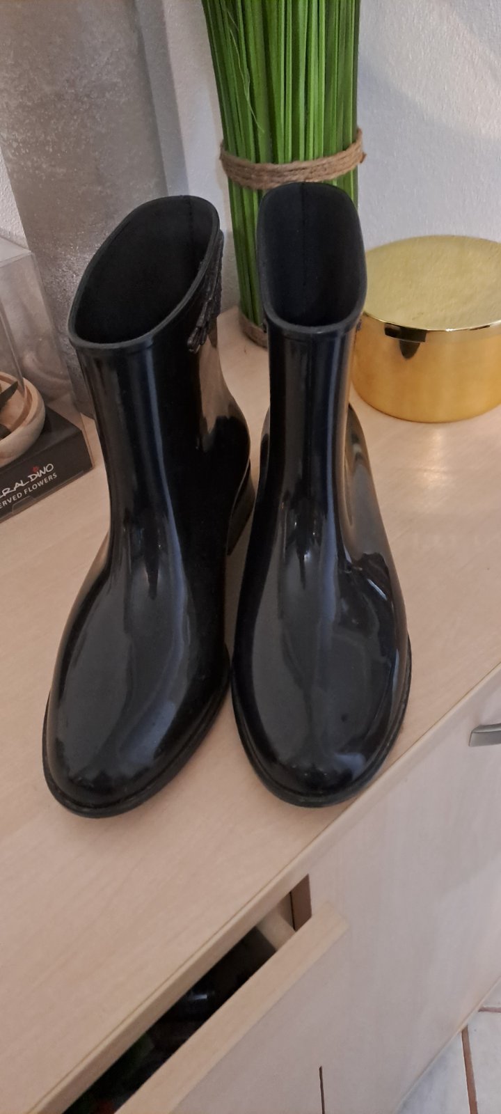 Málo nosené, nepremokavé čižmy. Predná časť lesklá, zapínanie na zips. PC 119€ Vložka 27cm