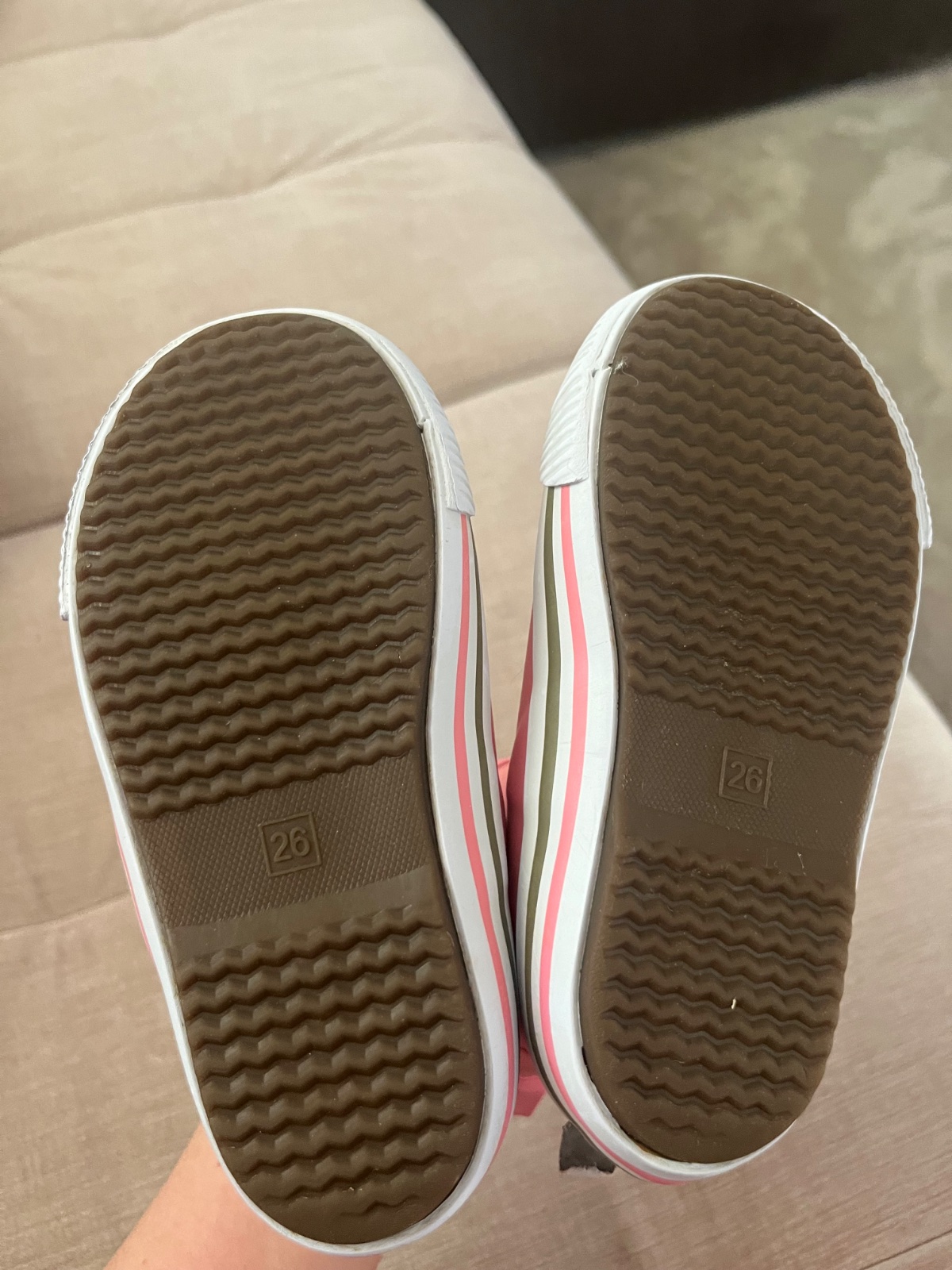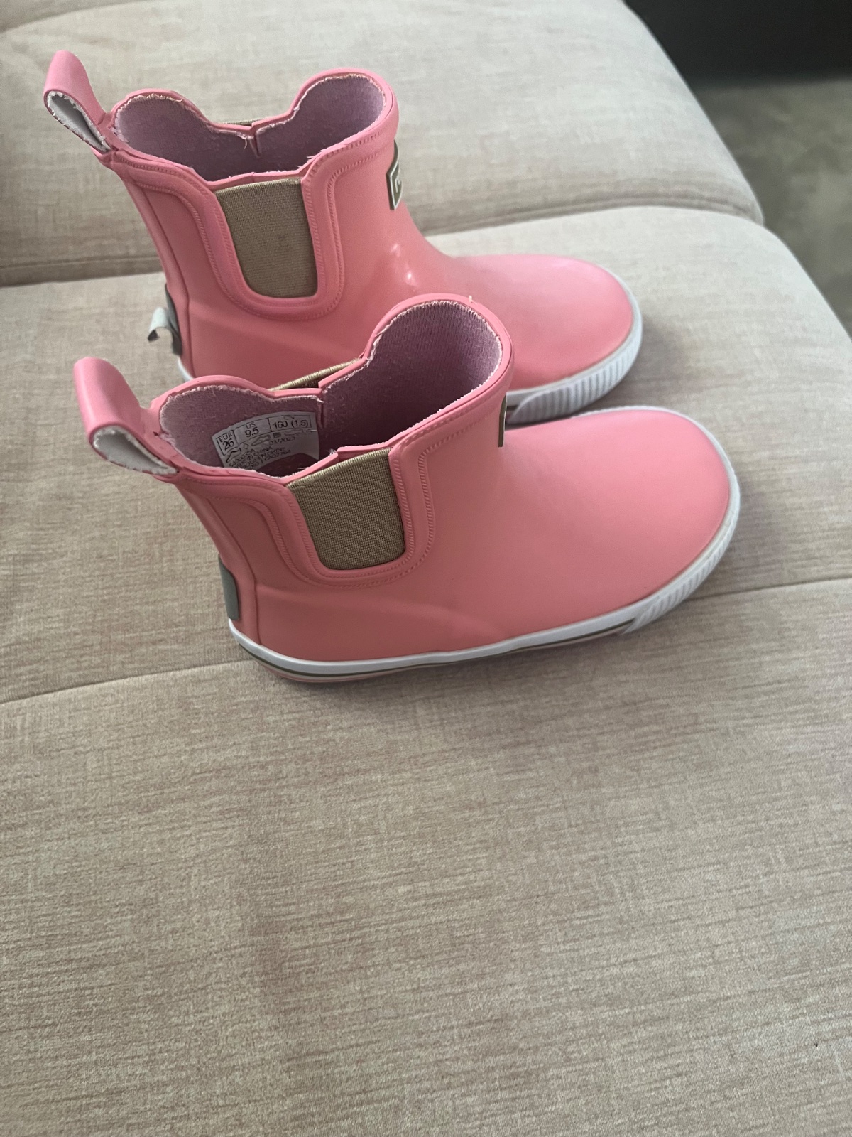 Nenosené, trošku zazlknute dievčenské gumáky. Vnútorná dĺžka 17cm. Poštovné: podľa sadzobníka Slovenskej pošty