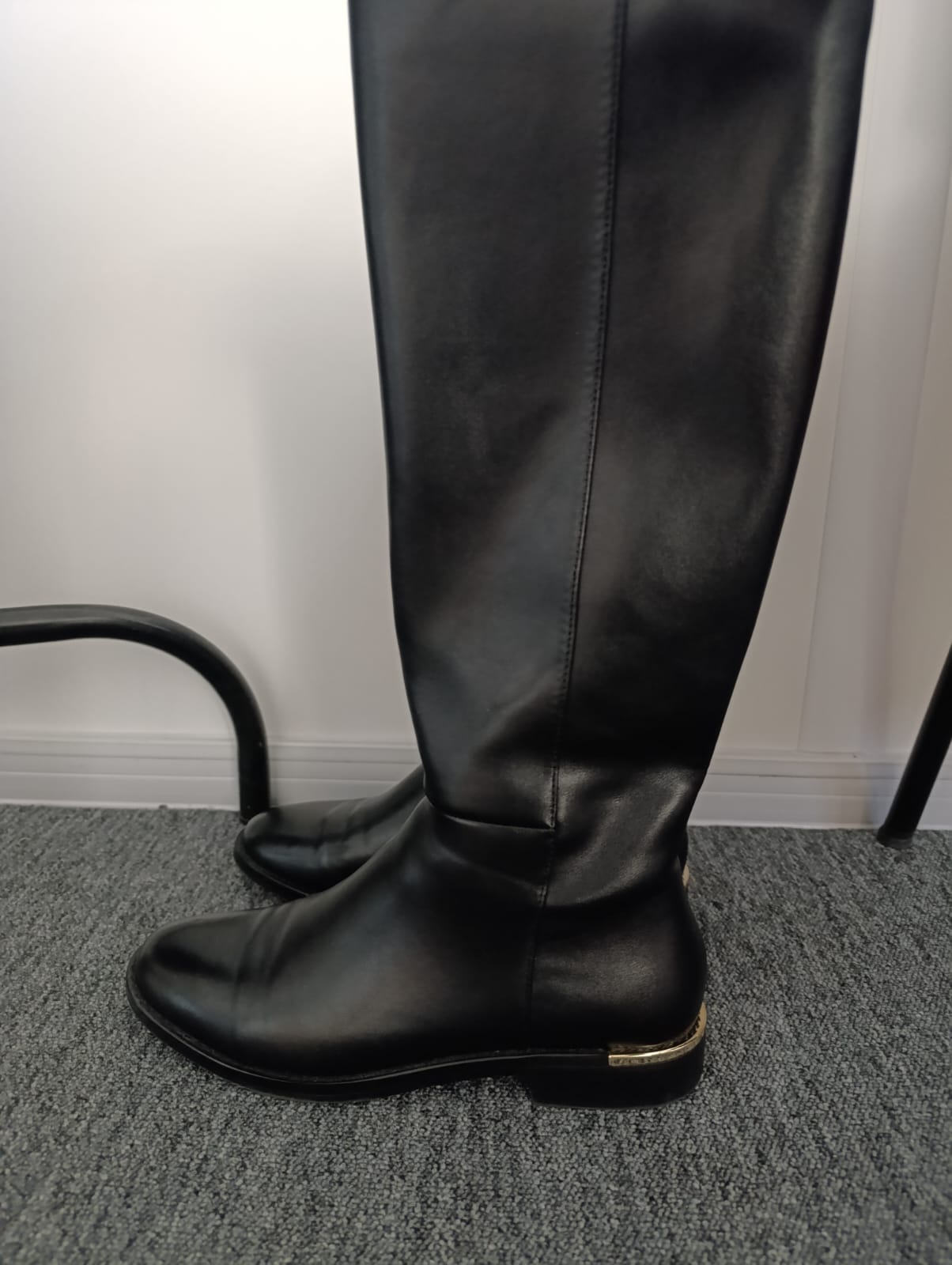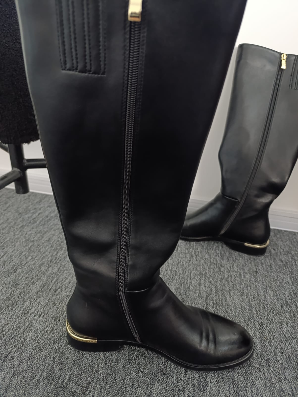 Veľmi málo nosené zachovalé vysoké čižmy kupovane v Deichmann. Trochu sú len skriabnute na ľavom podpätku vzadu, inak bez poškodení. cena vrátane poštovného.