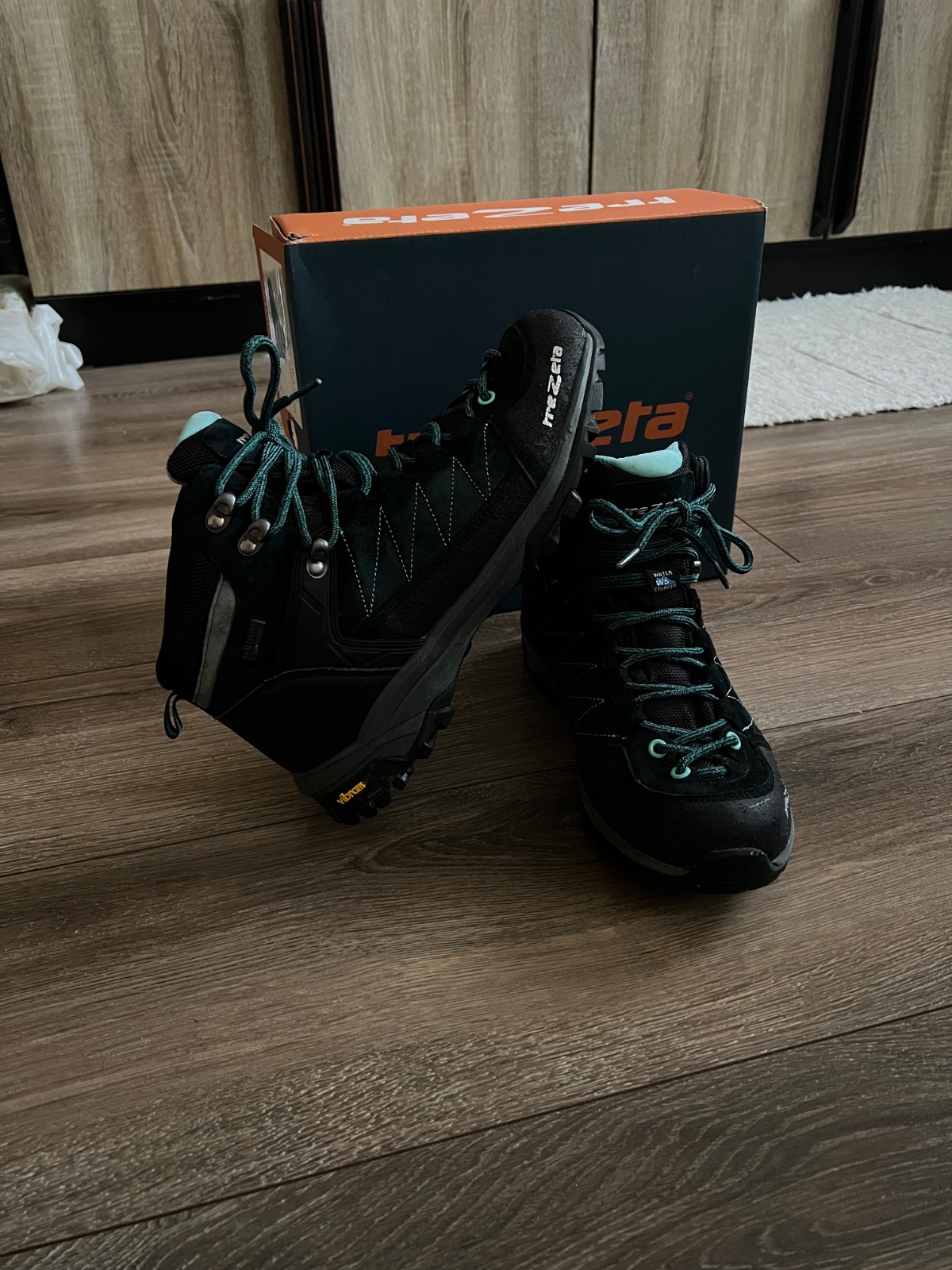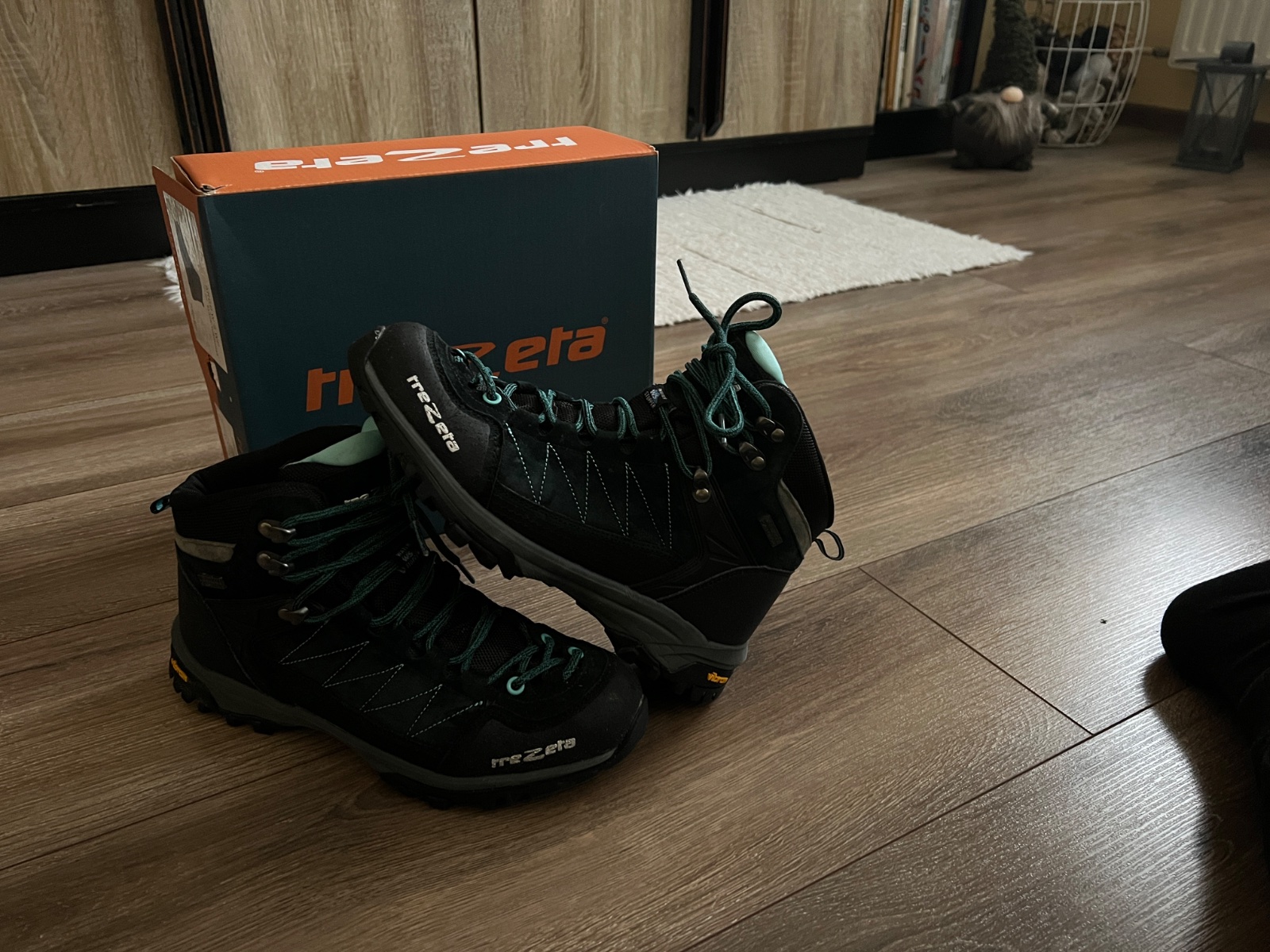 Ponúkam turistické topánky kúpené v Exisporte asi pred pol rokom, obuté jeden jediný krát na túru. Keďže mám citlivé prsty na nohách, musím topánky kúpiť a aspoň chvíľu v nich chodiť, aby som vedela, aká bude reakcia chodidla. Teda tieto posúvam v super cene ďalej. Veľkosť píšu 40, ale podľa mňa sú max. 39 aj podľa vnútorného rozmeru 25,5cm.