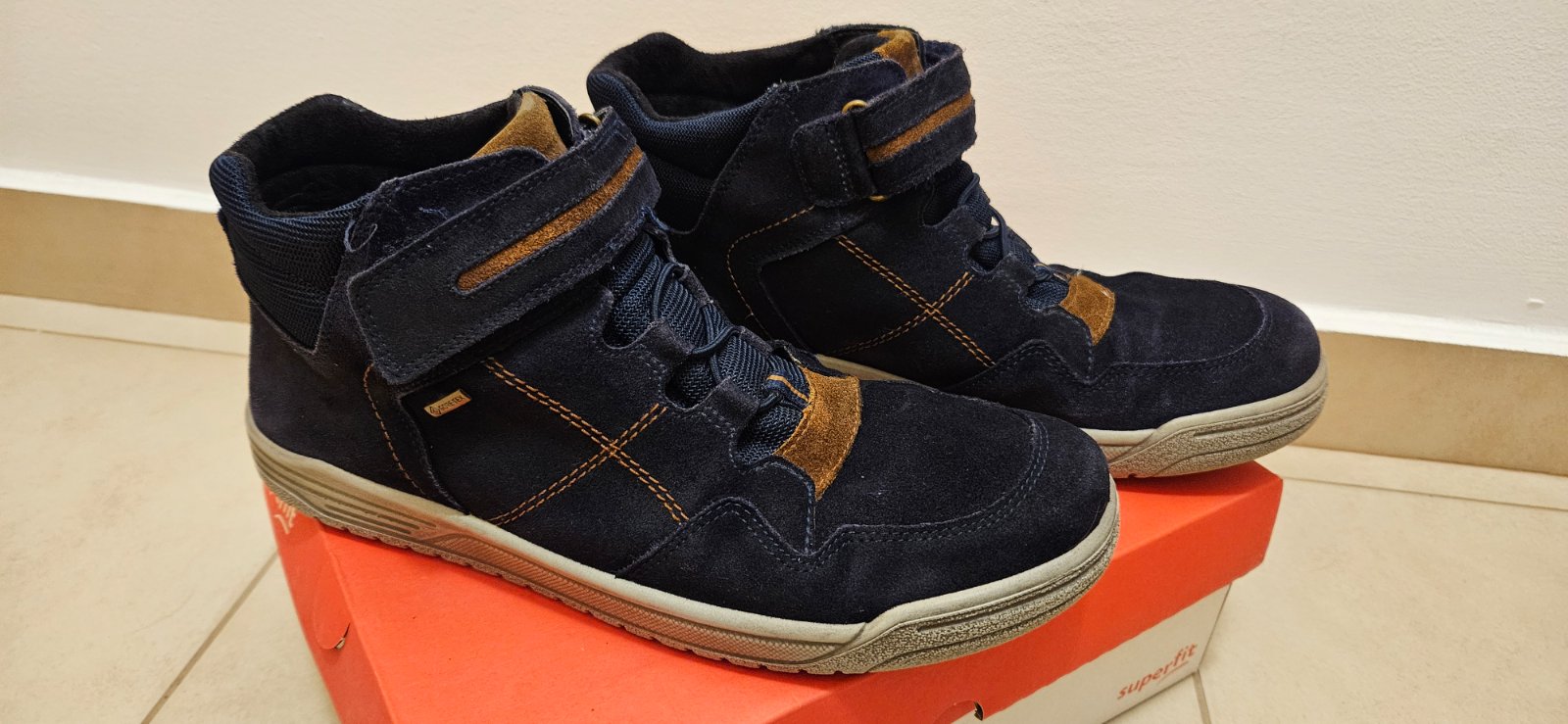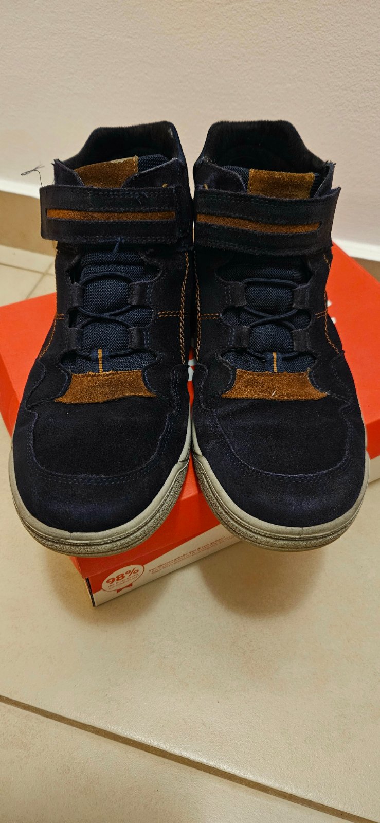 Topánky sú vo veľmi peknom nosenom stave, stačí ich pretrieť prípravkom na nubuk.