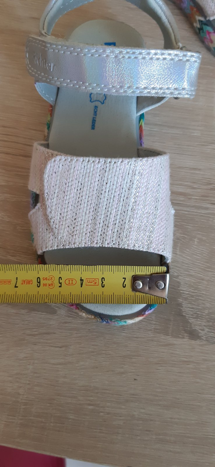 Kvalitne kožene sandalky Richter. Zvršok usňová koža s jemne trblietavou povrchovou úpravou, vnútorné podšívky aj stielky kožené.