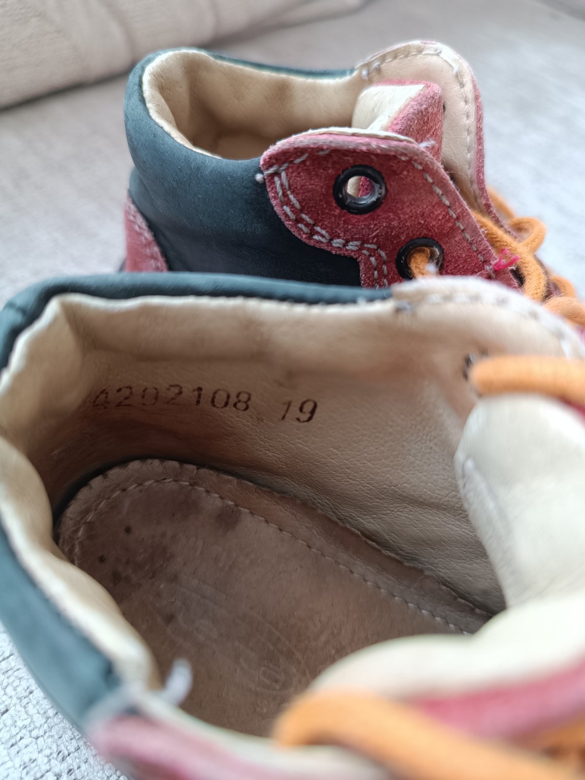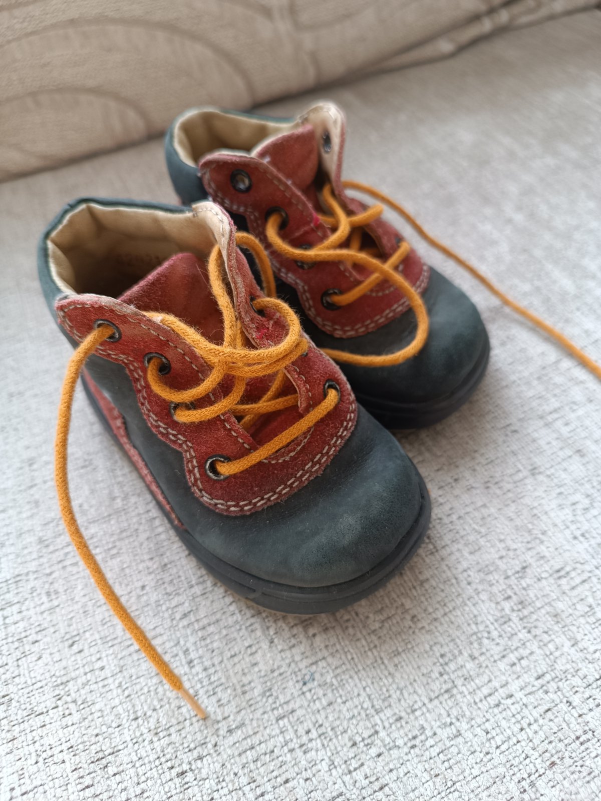 Kožené topánky pre chlapca vo veľkosti 19. Kúpené, no žiaľ ani raz neboli obuté, nakoľko nesadla veľkosť. Vnútorná dĺžka je 11 cm. Cena 10 eur plus poštovné.