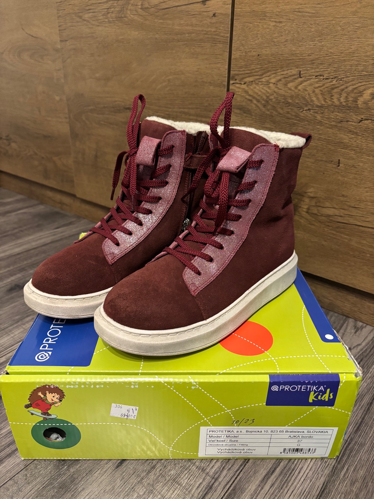 Predám zimne topanky Protetika velkost 37, povrch semisovy, zpredu už trochu farba ošúchaná, cena znížená. Cena plus poštovné