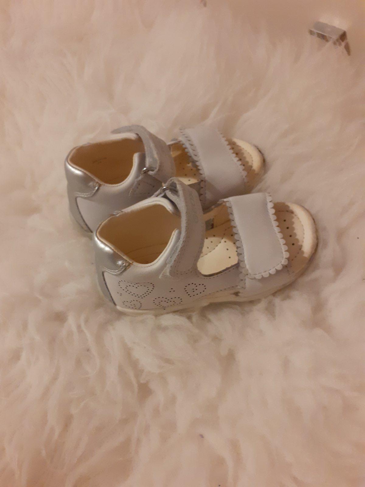 Bielo-strieborne kozene sandalky, malicko nosene, prileztostne k siatkam,
