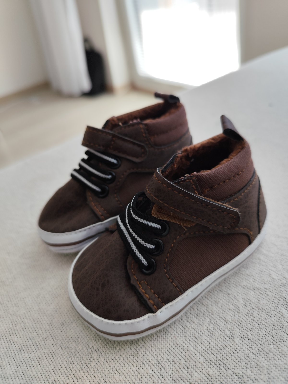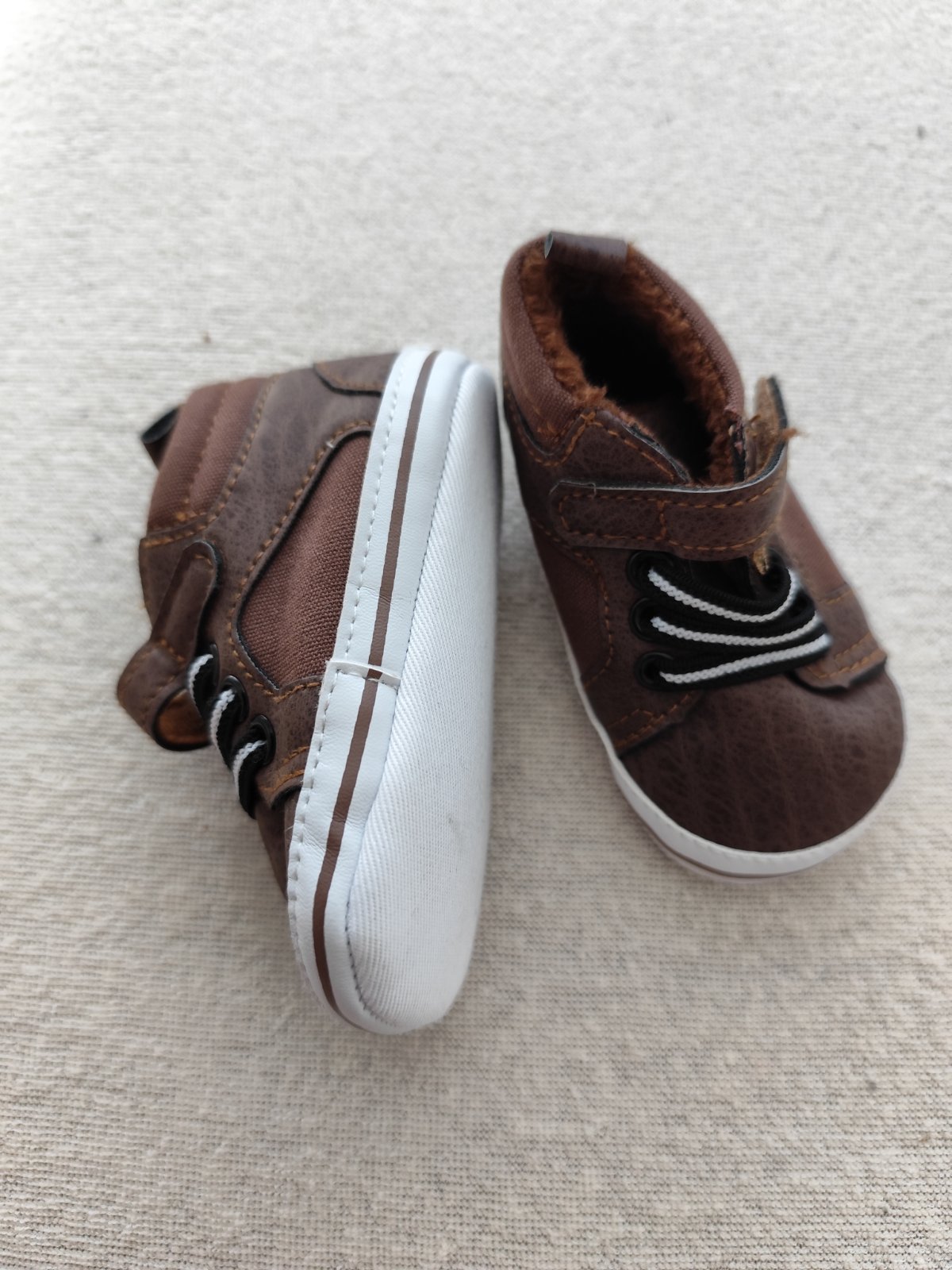 Capacky hnedej farby, ako nové. Je zmeraná vnútorná dlzka topanky na fotke, ktorá je cca 9,5 cm, idealne na nohu ktorá je 8cm až 8,5cm dlha.