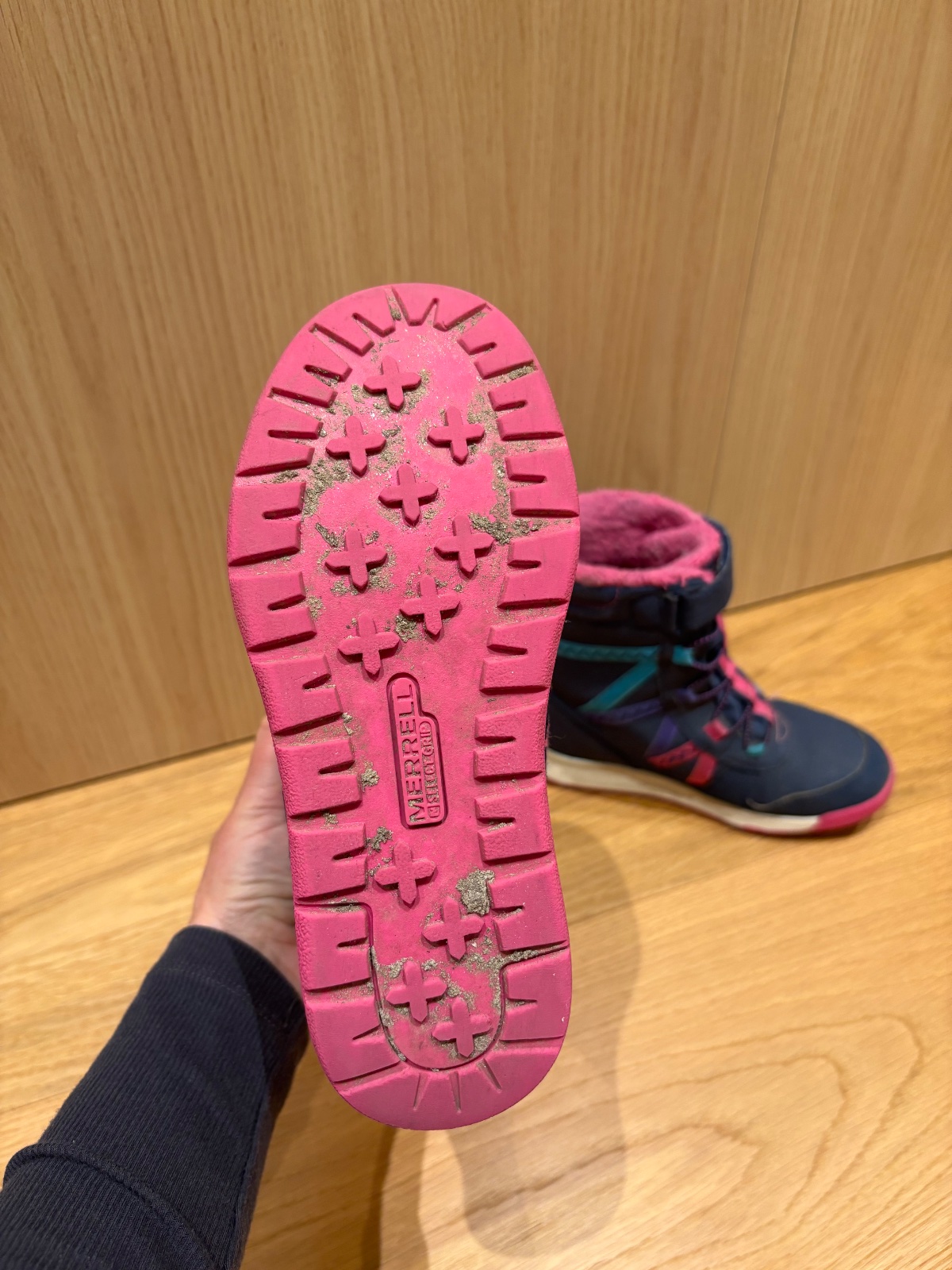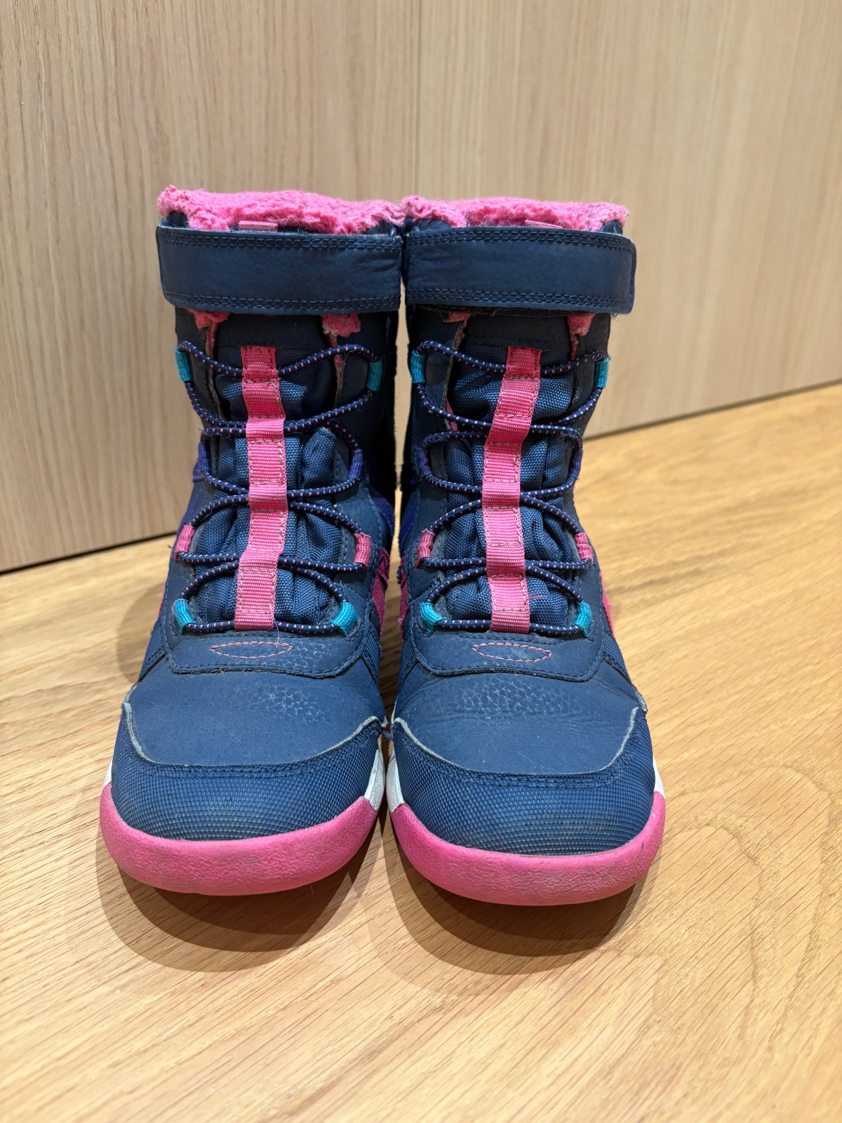 Perfektne zimne topanky, teple a nepremokave. Nosenie vidno iba na vnutornej kozusinke, ktora uz je jemne zozmolkovana, zohladnene v cene. Zvonku su ako nove, aj podrazka v super stave (pozri fotky). Velmi kvalitna znacka, kupujeme opakovane :)