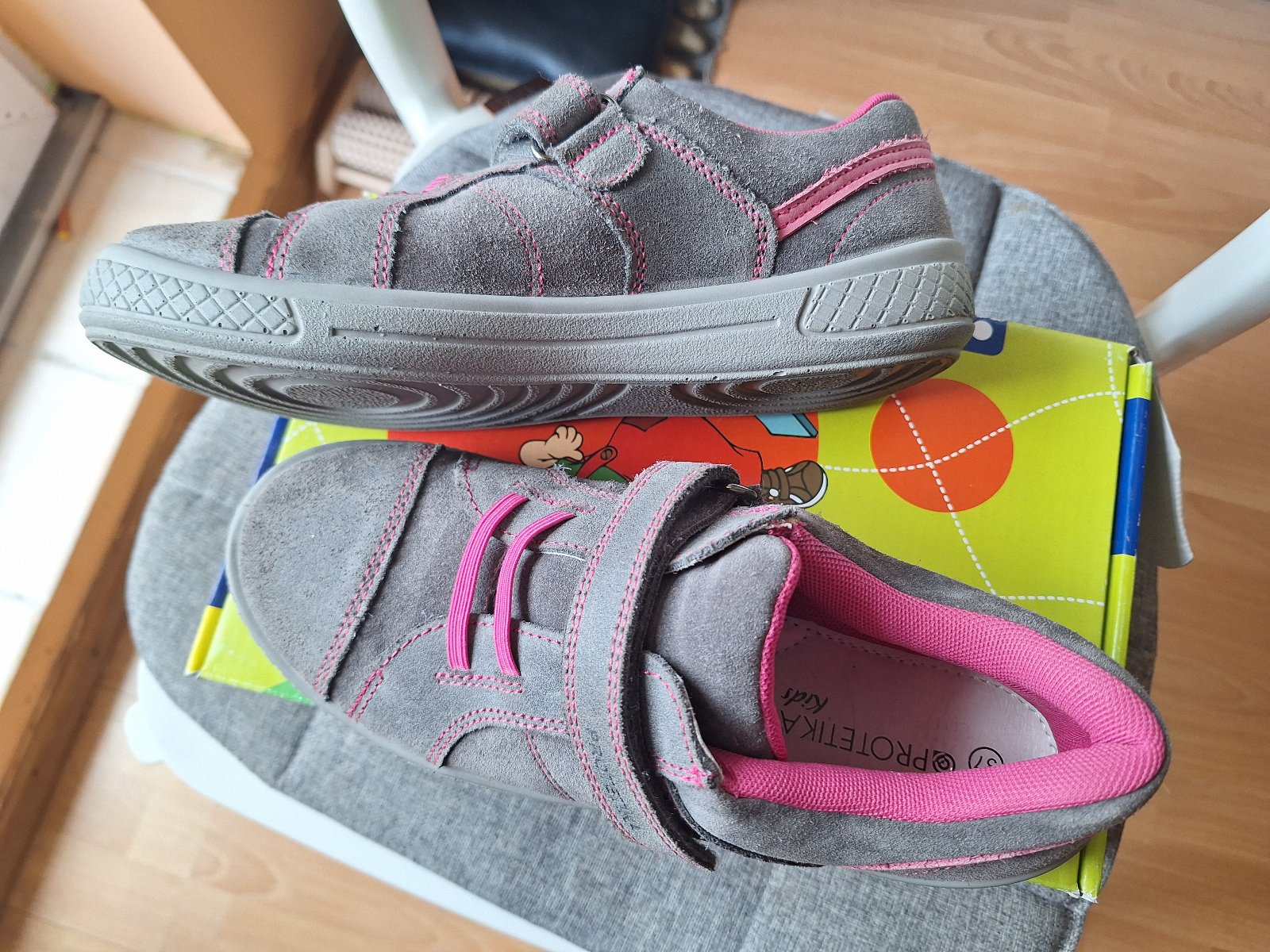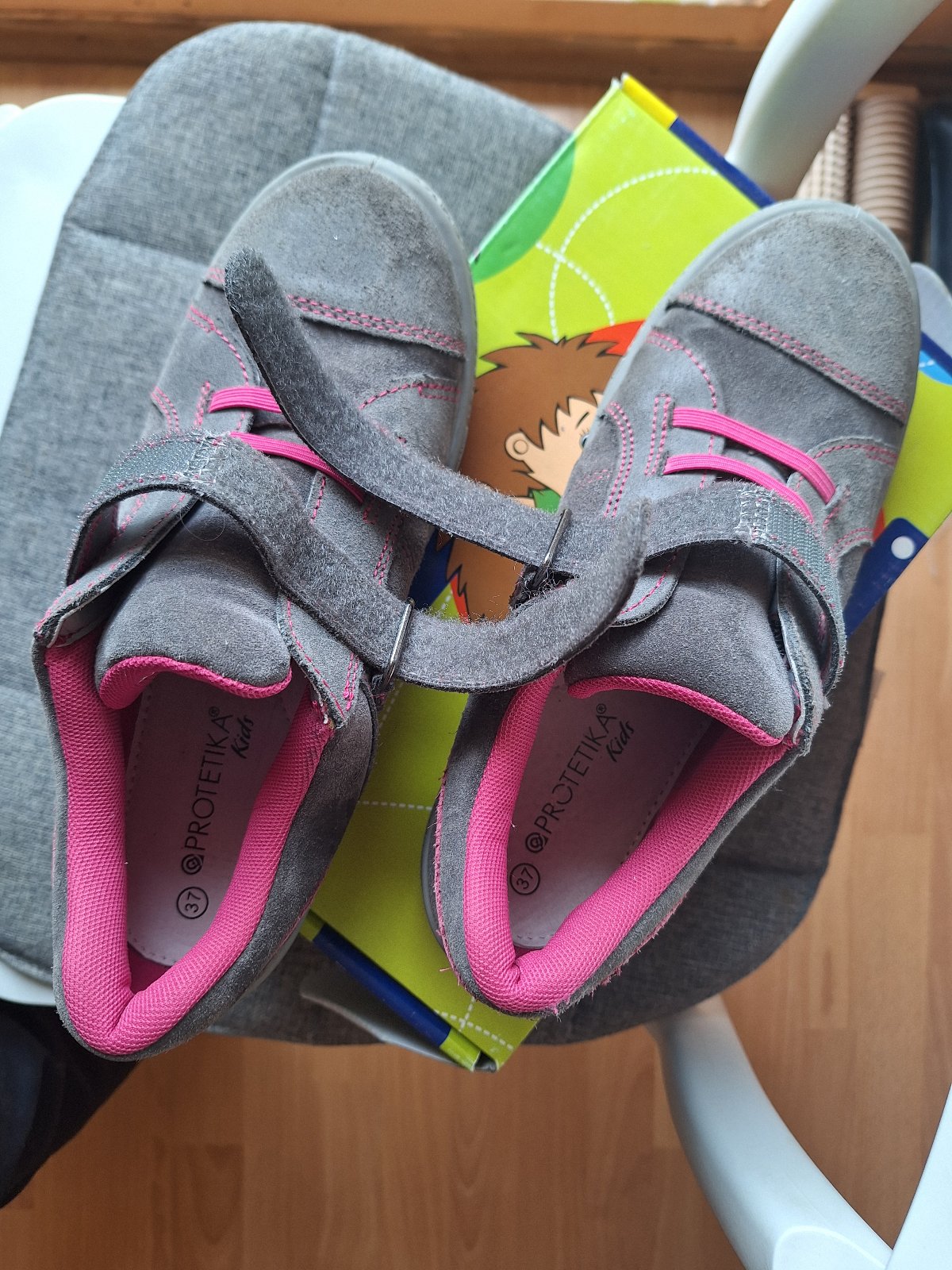 Predám dievčenské poltopánky - tenisky Protetika na prechodné obdobie jar- jeseň, farba je šedá v kombinácii s ružovou, zachovalé, bez poškodenia, nosené málo. Sú pohodlné, príjemné okolo členkov a päty. Zapínanie na suchý zips. veľ.37, dĺžka vnútornej vložky je 23cm.