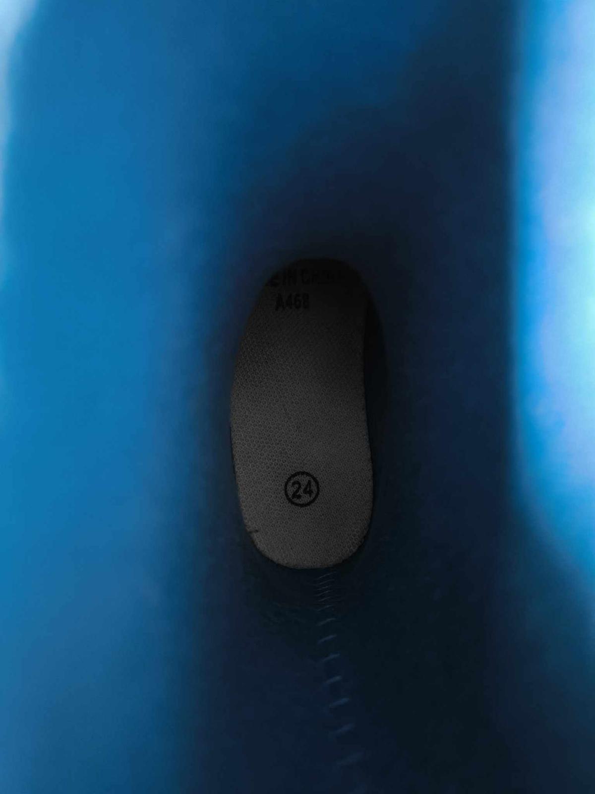 Gumáky veľmi málo používané, farba čierno fľakatá s modrým lemom. Značka Blackfox.