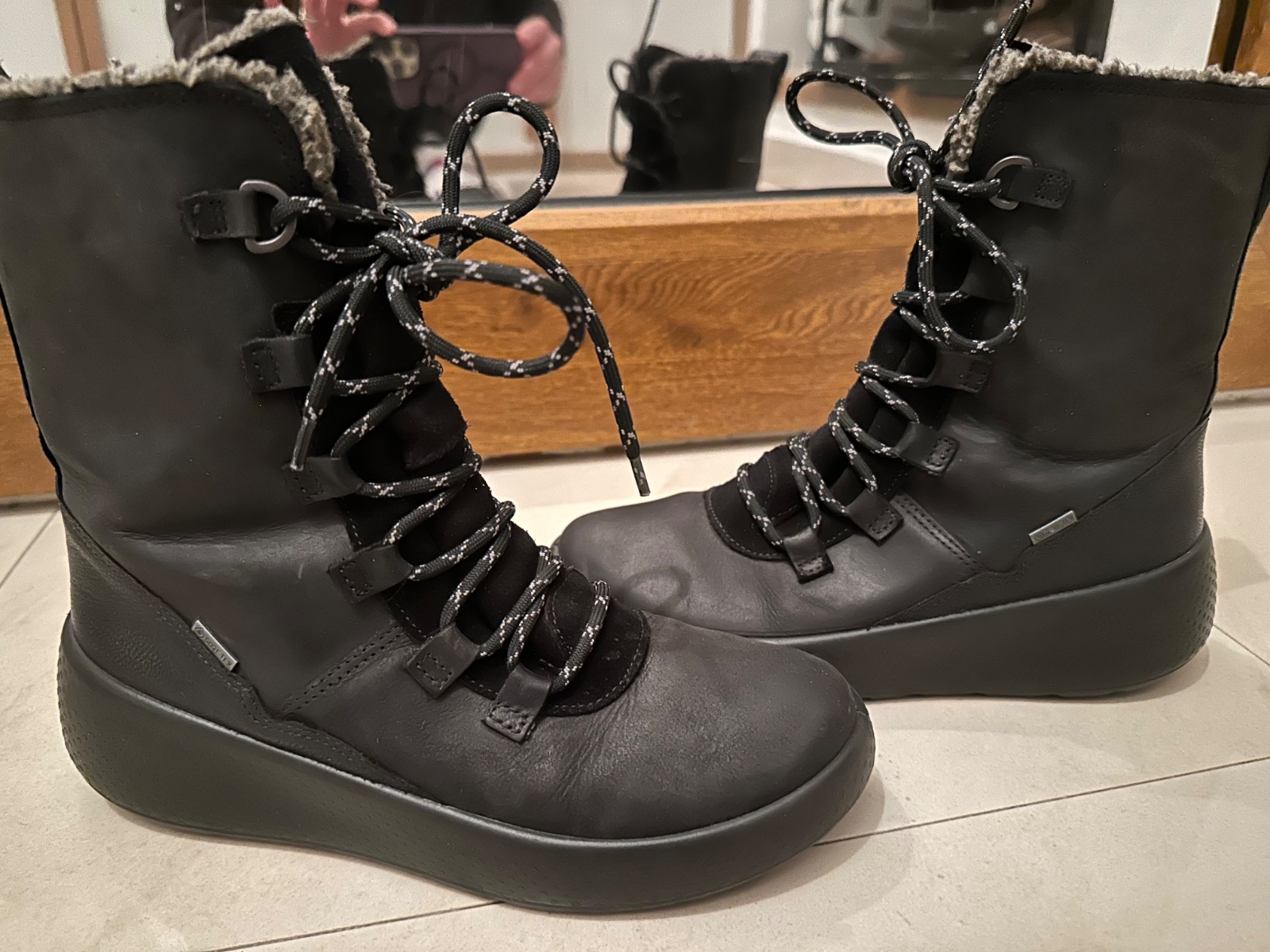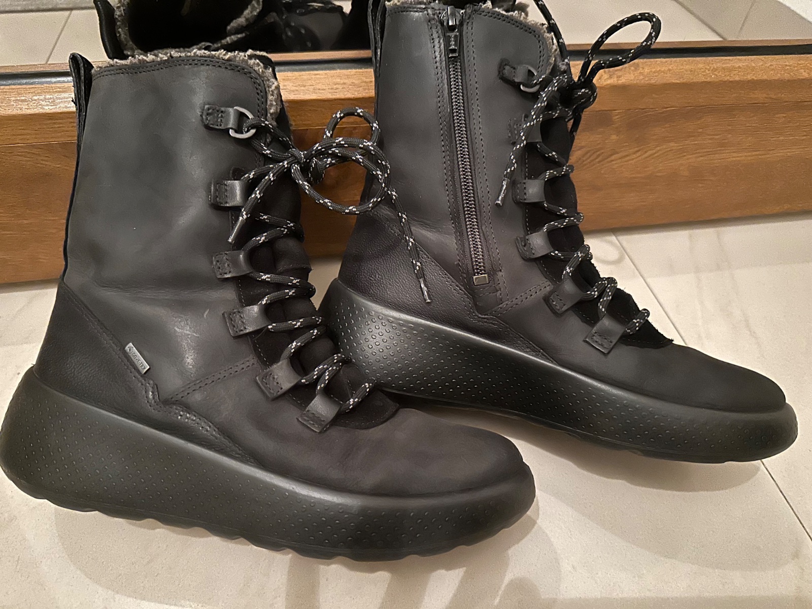 Ecco goratexové, teplé, kožené, v perfektnom stave čižmy. Boli nosené, ale sú v top stave. Velkosť 36, čierne.
