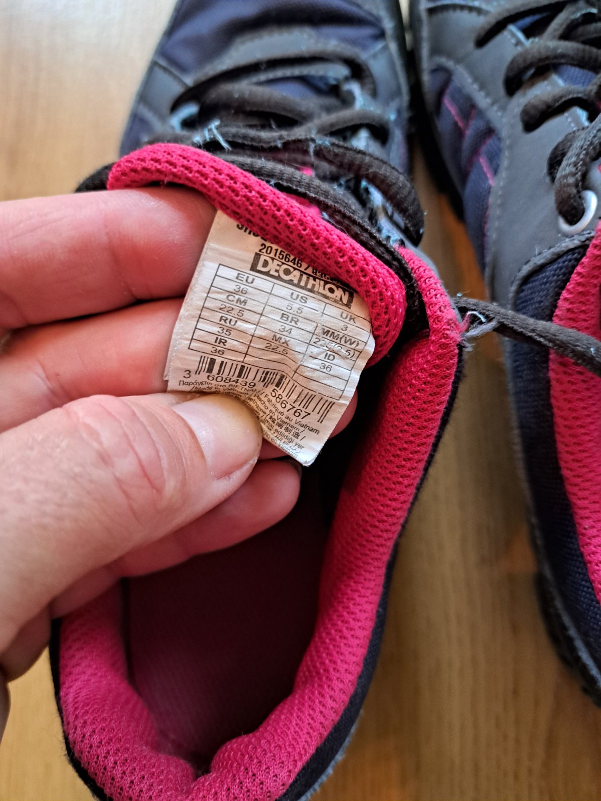 V top stave, málinko nosené. Turistické boty, ale vhodné aj ako botasky na bežné nosenie. Veľkosť uvedená 36, ale skôr 35/36, keďže vnútorná dĺžka vložky je ledva 23,5cm