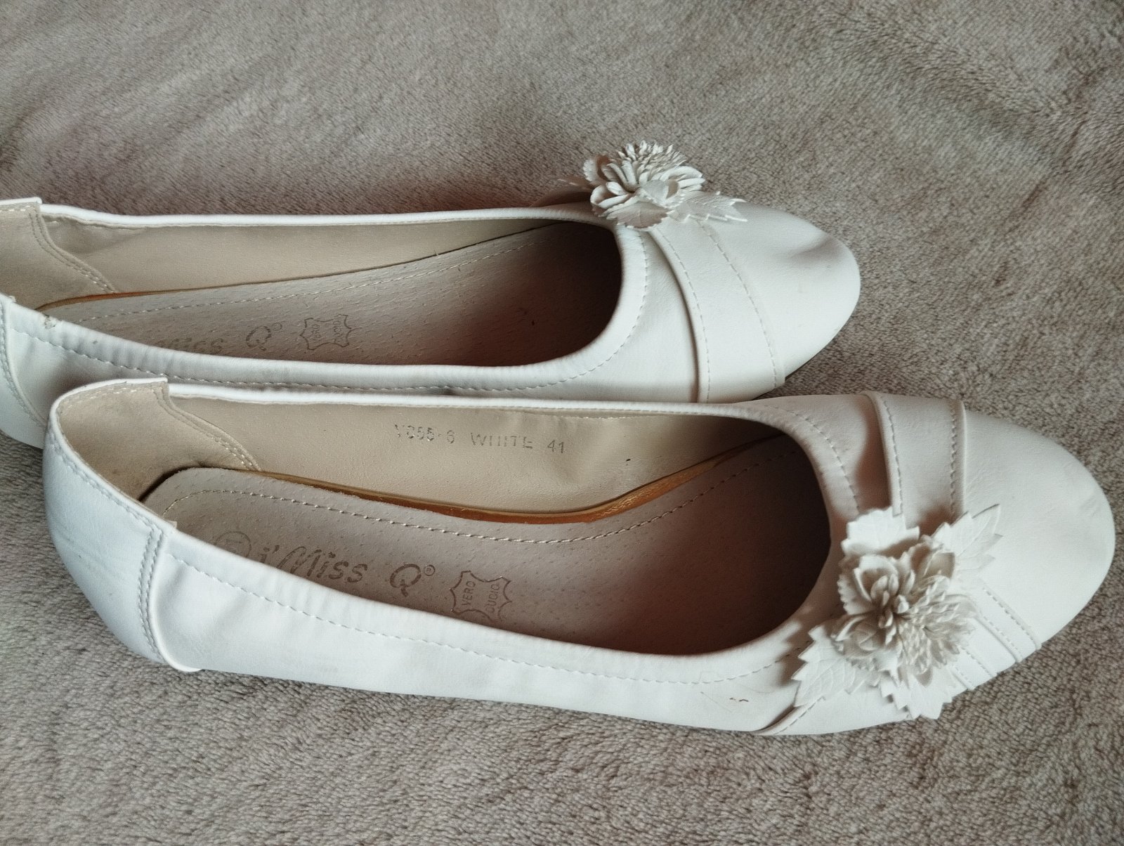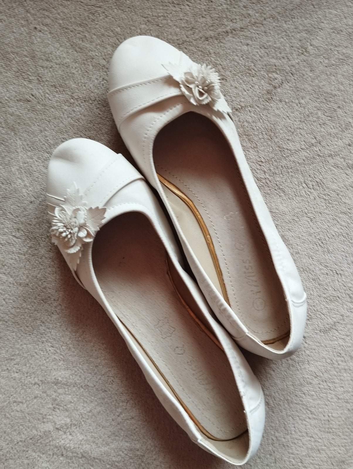Ponukam biele baleriny,velkost 41,obute som ich mala len 1x na svadbe 🙂