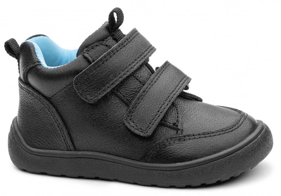 Chlapčenské jesenné barefoot topánky spájajú eleganciu a štýl s pohodlným strihom. Vďaka nadčasovému dizajnu sa topánky jednoducho kombinujú s rôznymi outfitmi. Zvršok je vyrobený z umývateľnej prírodnej kože v čiernej farbe. Dvojité zapínanie na suchý zips umožňuje jednoduché obúvanie a pevne fixuje topánku na nohe. Vo vnútri sa nachádza netvarovaná, vyberateľná kožená stielka. Okrúhla podošva s jemným protišmykovým dezénom je odolná a zároveň veľmi ohybná. Trendy dizajn a kvalitné materiály robia z týchto topánok ideálnu voľbu na jeseň. Špička je dostatočne priestranná pre širšie chodidlo. Rovná podošva je maximálne ohybná a má nulový drop, čo zabezpečí chôdzu „ako naboso“. Čiastočne spevnený opätok udržuje nôžku v správnom postavení.
