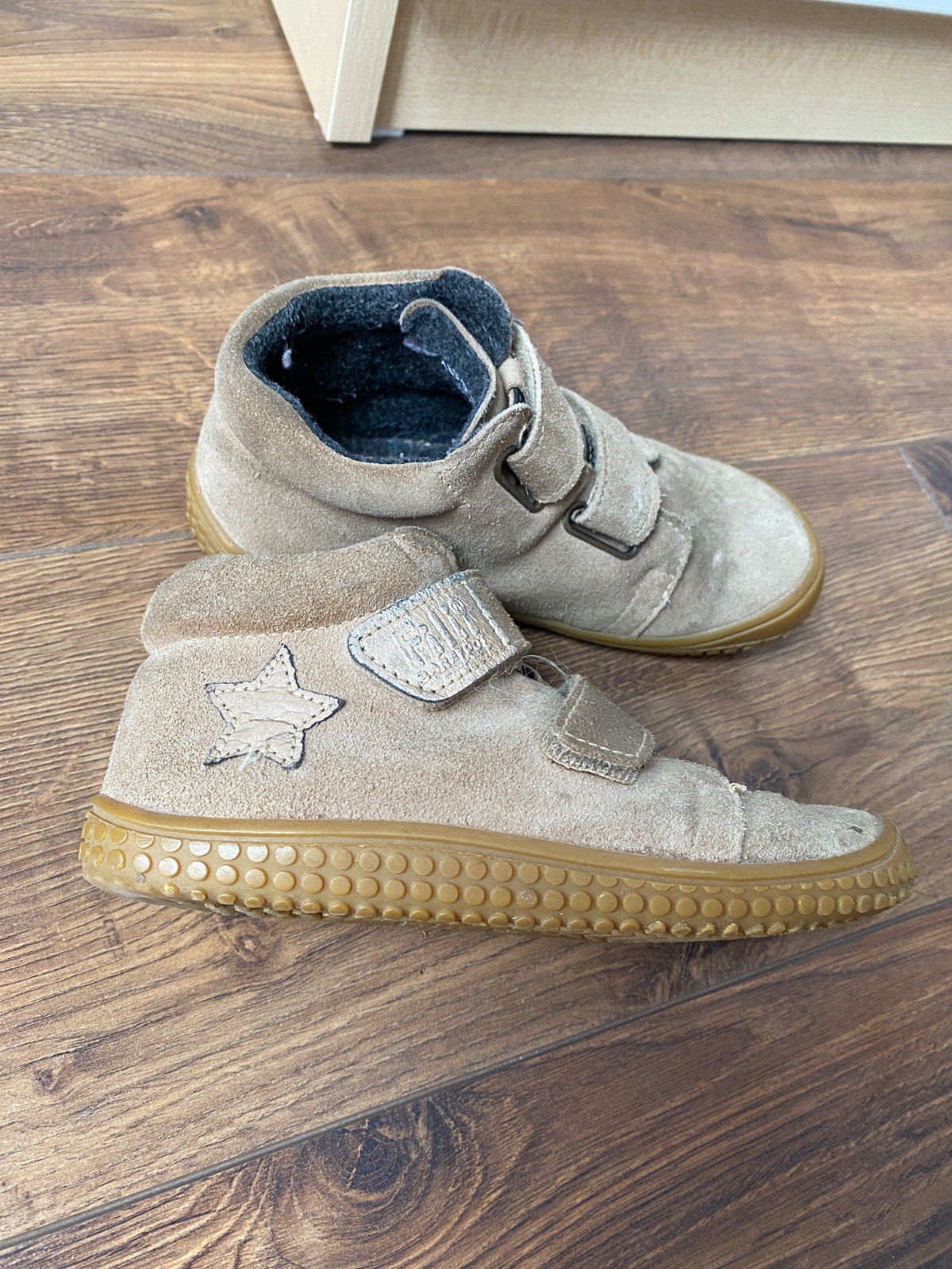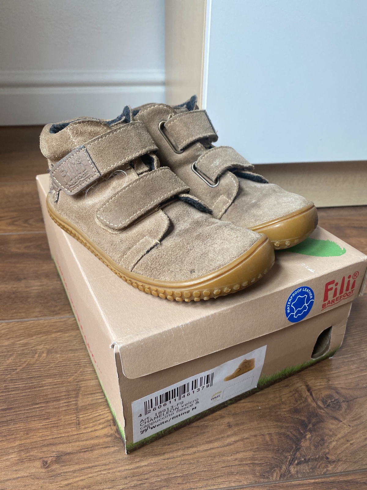 Predám nosené tenisky značky Filii, sú v super stave. Veľkosť tenisiek je 27, celý zvršok je z brúsenej kože. Sú to barefoot tenisky, moja dcérka ich veľmi rada nosila. Mám aj originál krabicu. Len podrážka je mierne zašpinená od žuvačky - malo by to ale ísť dole.
