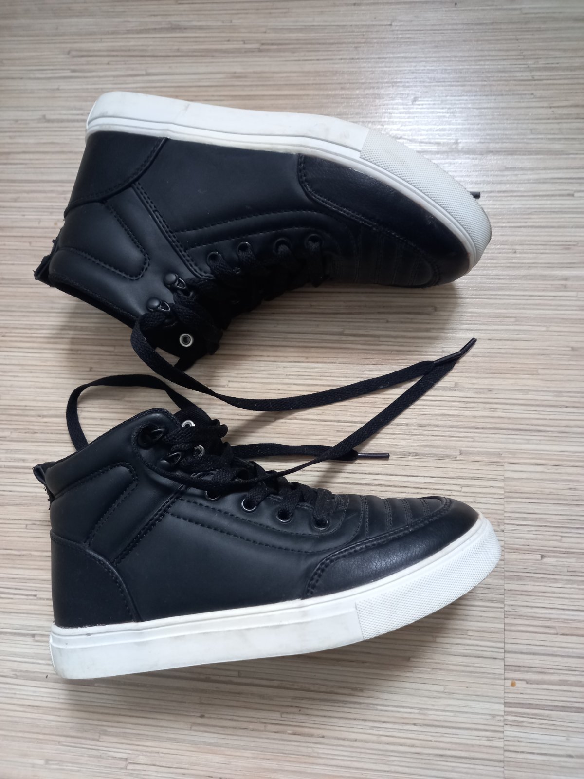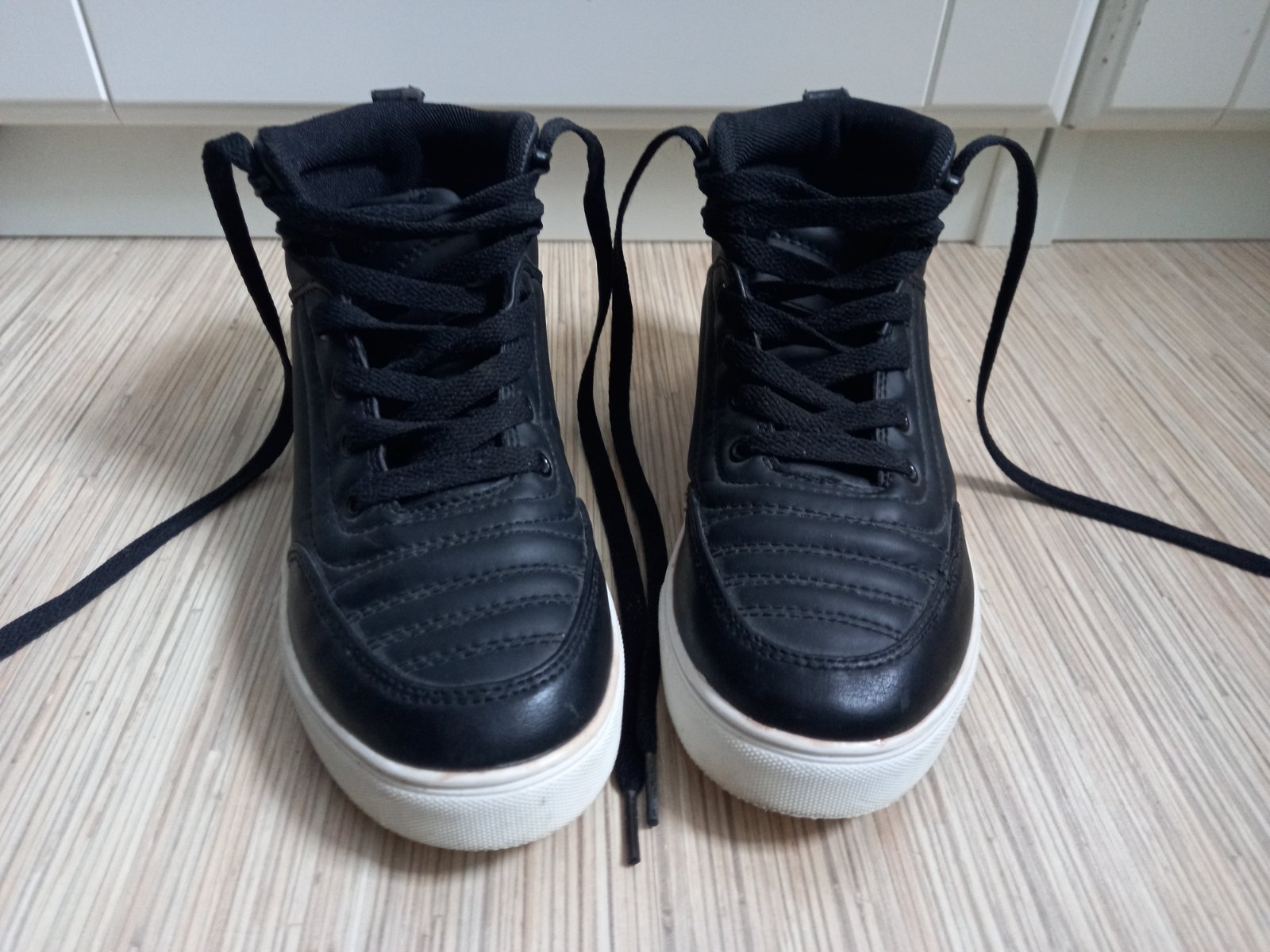 Topánky v super stave, obuté asi 2x, materiál čierna koženka, takže dobre sa čistia a sú vhodné aj do dažđa, vn.dľžka je 22cm