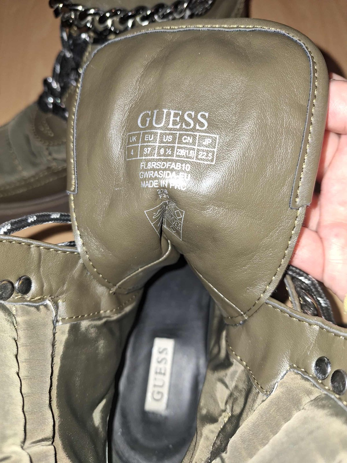 Členkové čižmy Guess, hladká koža, zips na vnútornej strane, 3 pracky na vonkajšej strane, opätok cca 4 cm, výborný stav, nosené príležitostne - minimálne znaky používania, originálna krabica aj vr...