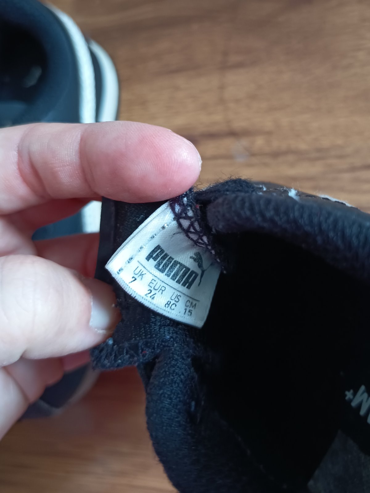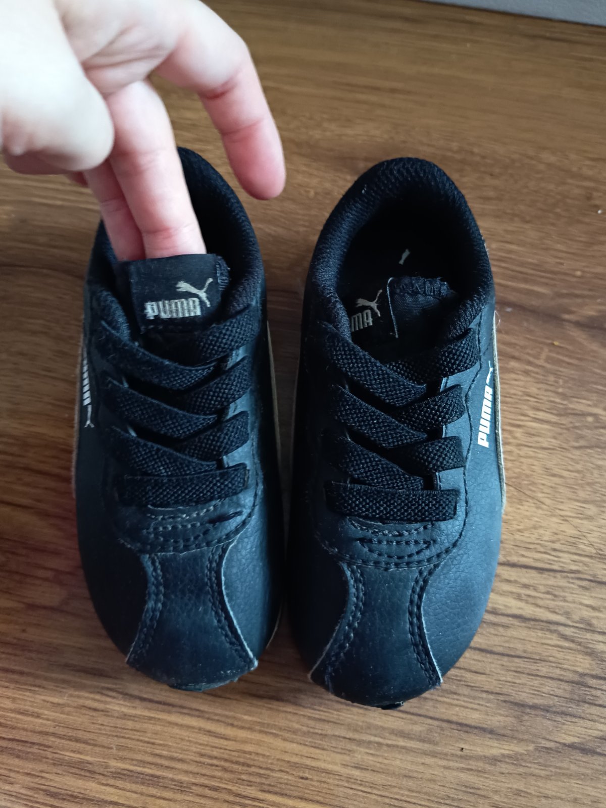 Krásne čierne tenisky Puma, ako nové, žiadne škrabance, nosené minimálne. Vnútorná vložka má 15,5 cm. Písaná je veľkosť 26,ale dĺžkou sedí skôr na veľkosť 24.