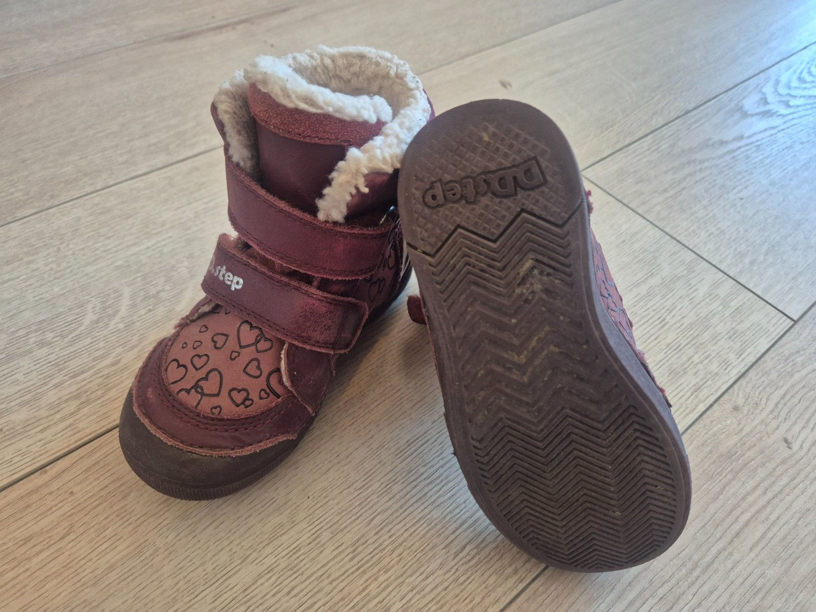Dd step čižmy, veľmi teplé , čistením vybledli farby, inak bez poškodenia, ešte poslúžia. Rozmery viď foto