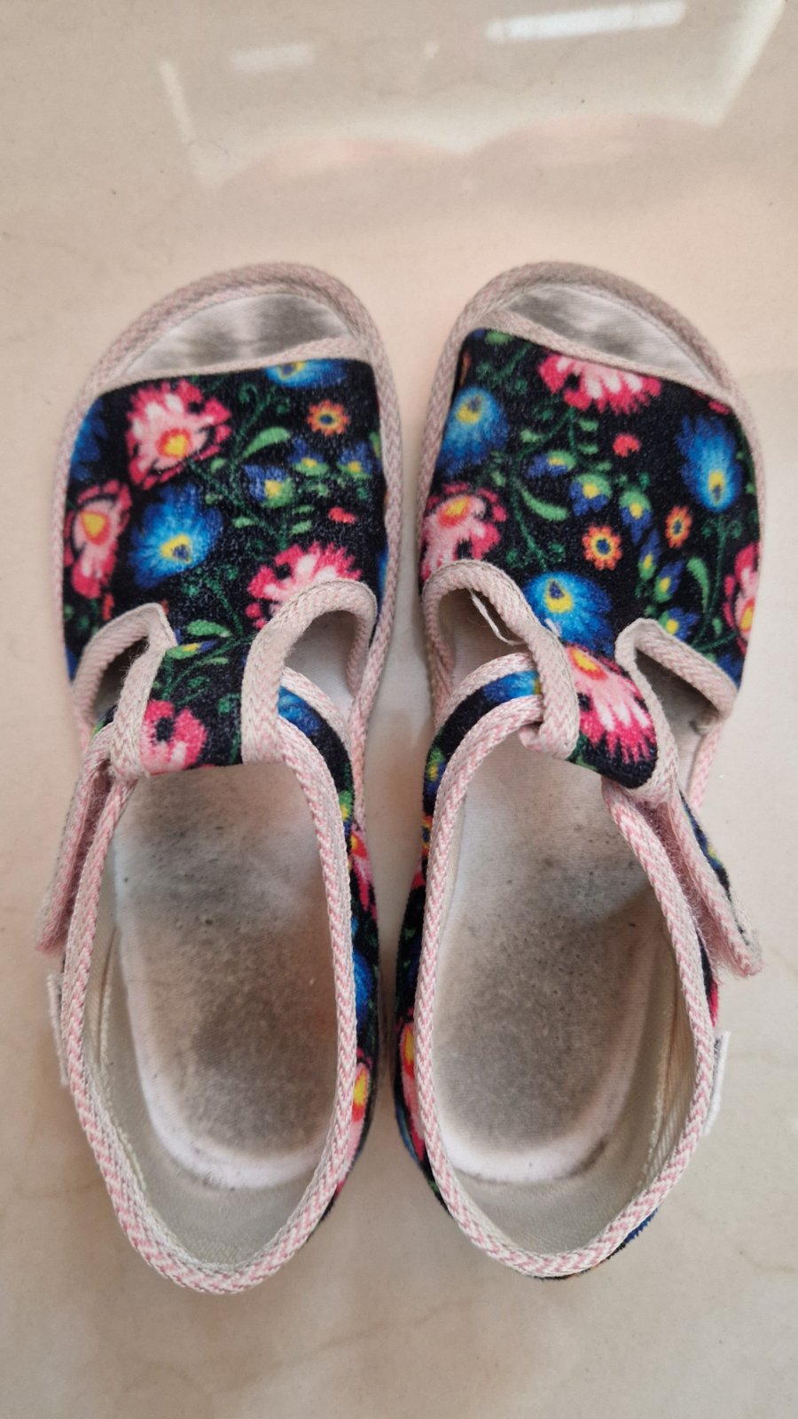 Papučky nosené, avšak bez chyby, suchý zips drží. Určite poslúžia