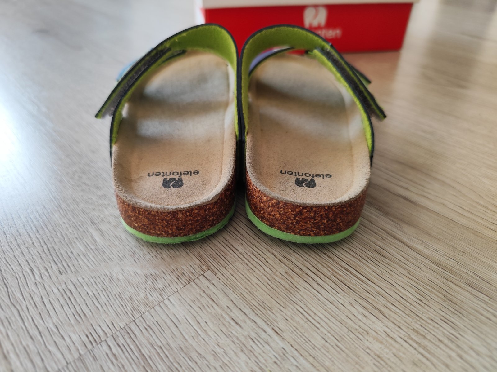 Predám pár krát obuté šľapky. Nosené len v interiéri. Top stav, žiadne poškodenie. Nastavenie praciek je pomocou suchého zipsu, ktorý pevne drží pracky. Vnútorná dĺžka 17,5 cm.