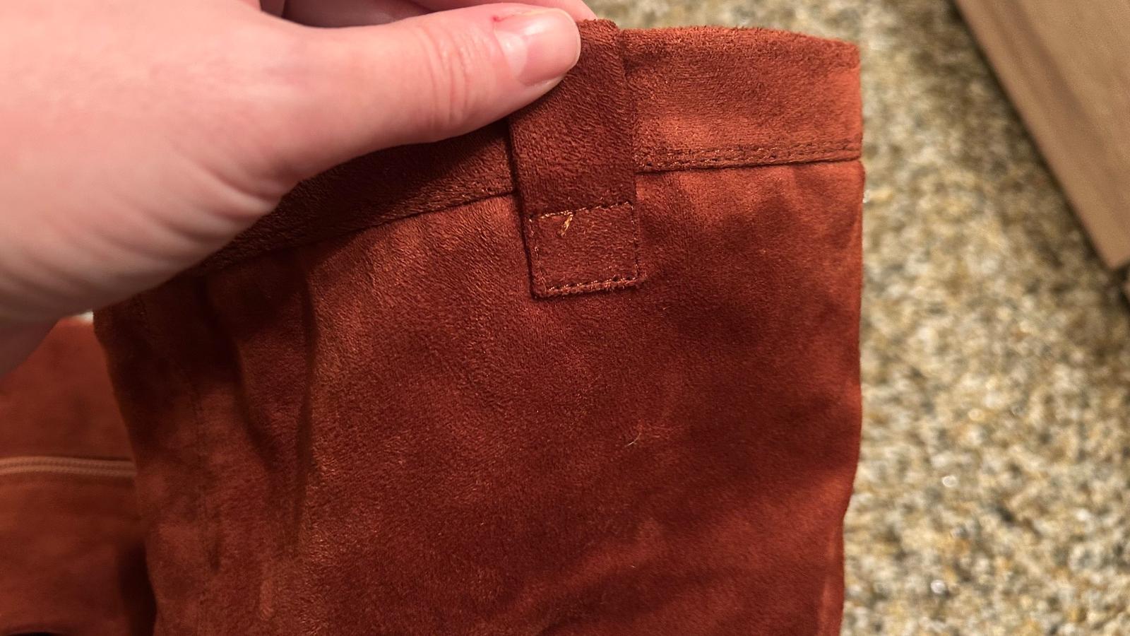 Predám úplne nové semiš čižmy ani raz obuté...maju klinový podpätok ...pre mňa vysoký podpätok 9cm P.C.35eur...doma mi zavadzajú