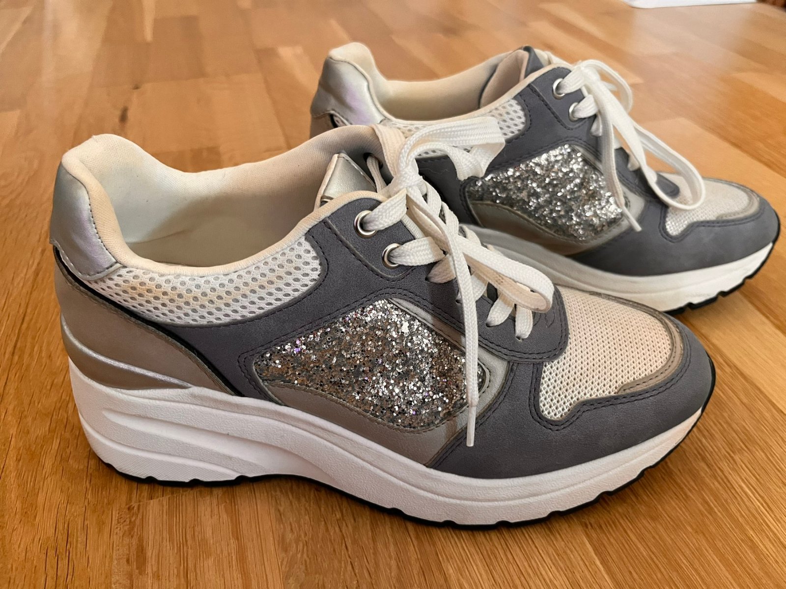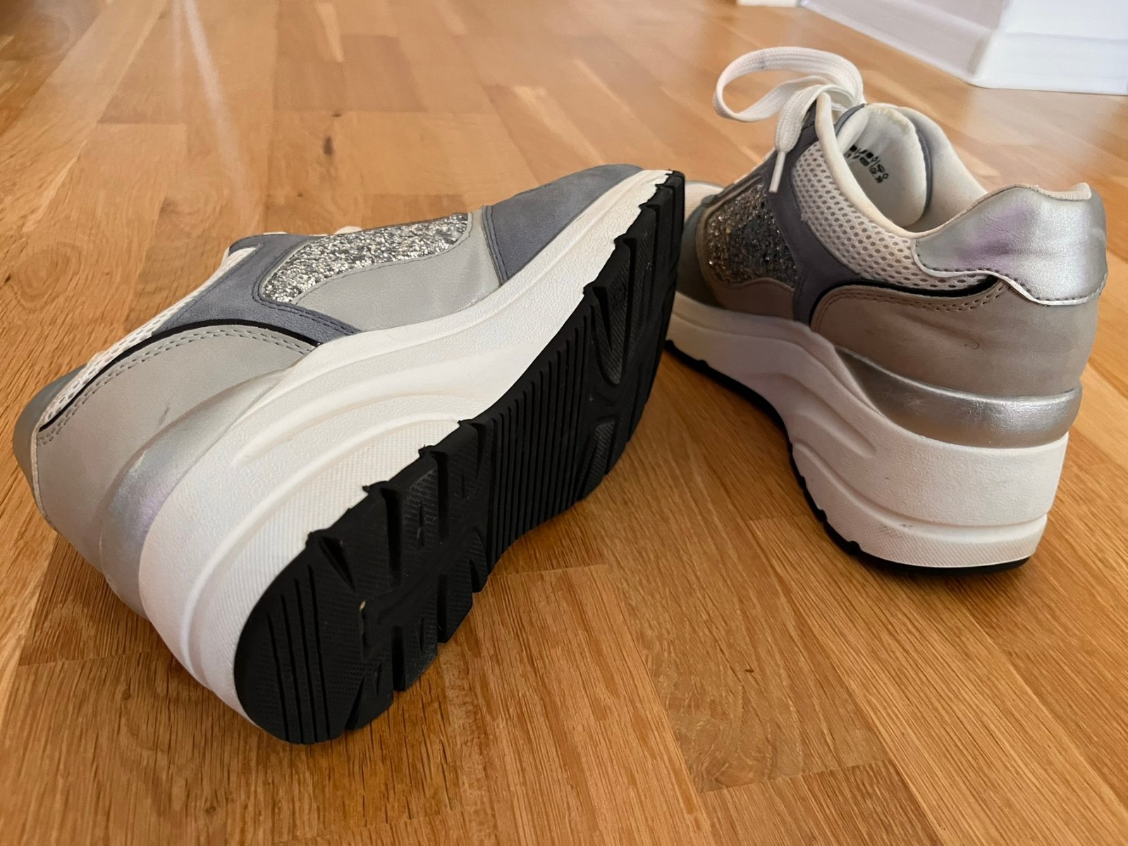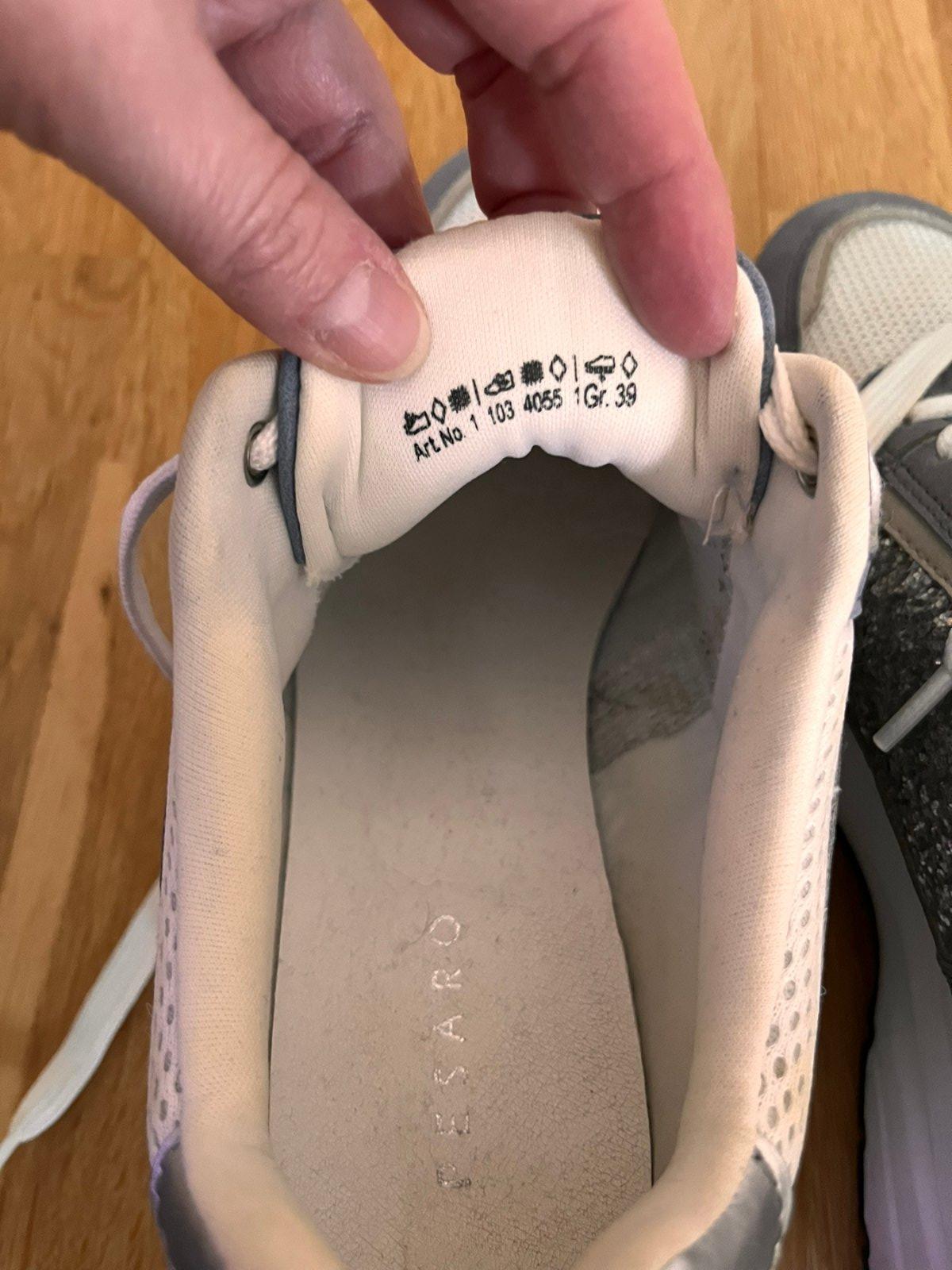 Veľmi pekné botasky/topánky v zaujímavej kombinácii farieb na vysokej protišmykovej podrážke. Kvalitná značka Pesaro, pôsobia veľmi bytelne, majú aj svoju váhu (nie sú ľahučké penové). Páčili sa mi vzhľadom, bohužiaľ aktuálne stoja - nevynosím. VD max 25,5 cm.