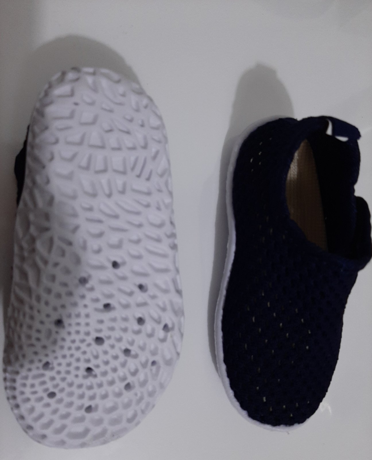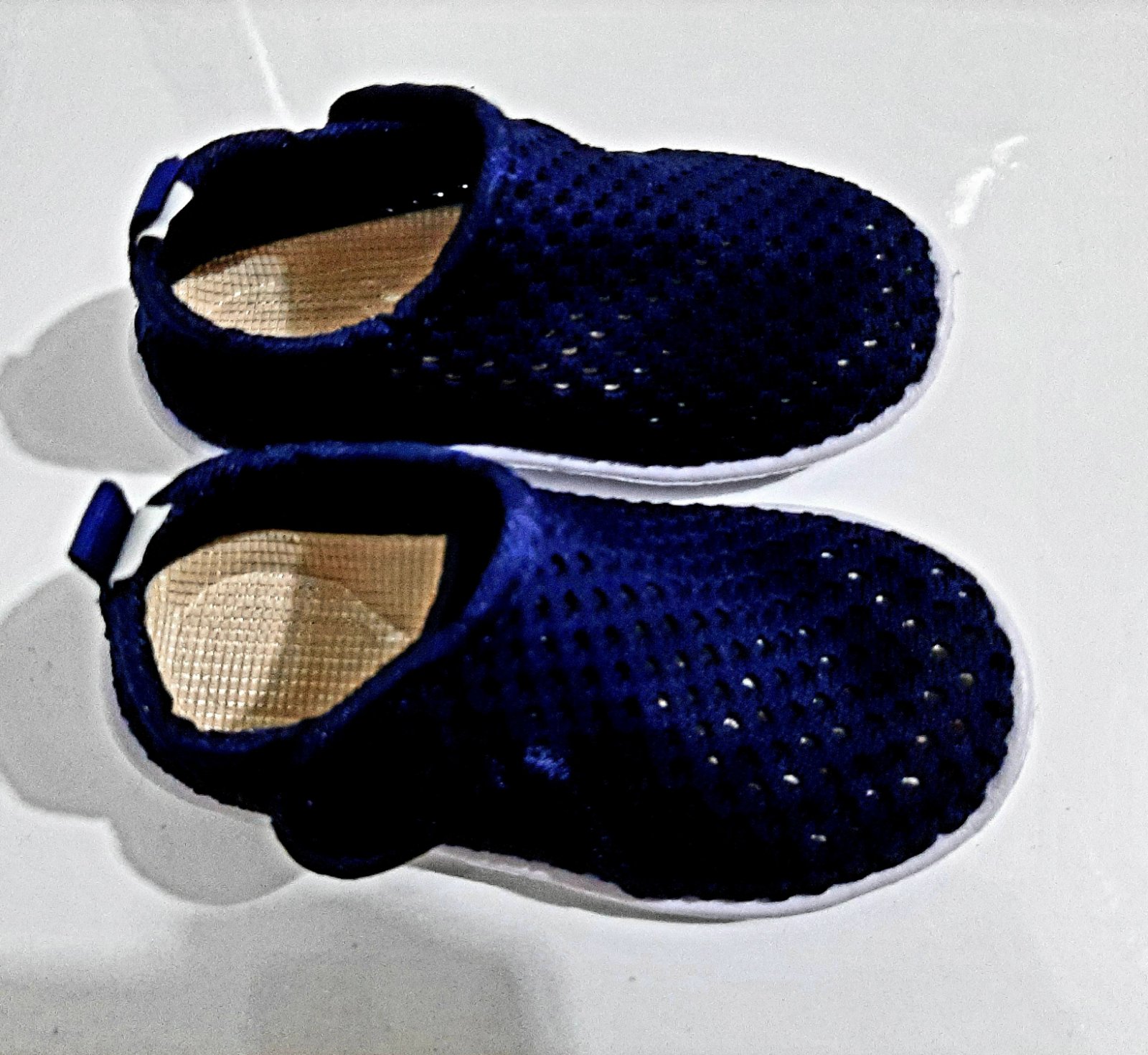 Predám úplne nové topánočky v tmavomodrej farbe (na fotke vyzeraju čierne, no v realu su modre) - na štitku bolo napisane, že su to letne topanky vhodné aj do vody. Sú makučké, priedyšné - aj podrážka je s priedychmi. Dostali sme ako darček (sešly se nám hned dvoje - predavam aj biele o pol čisla menšie :D), no synovi sú malé. Mal je na sebe iba pri skúšani.