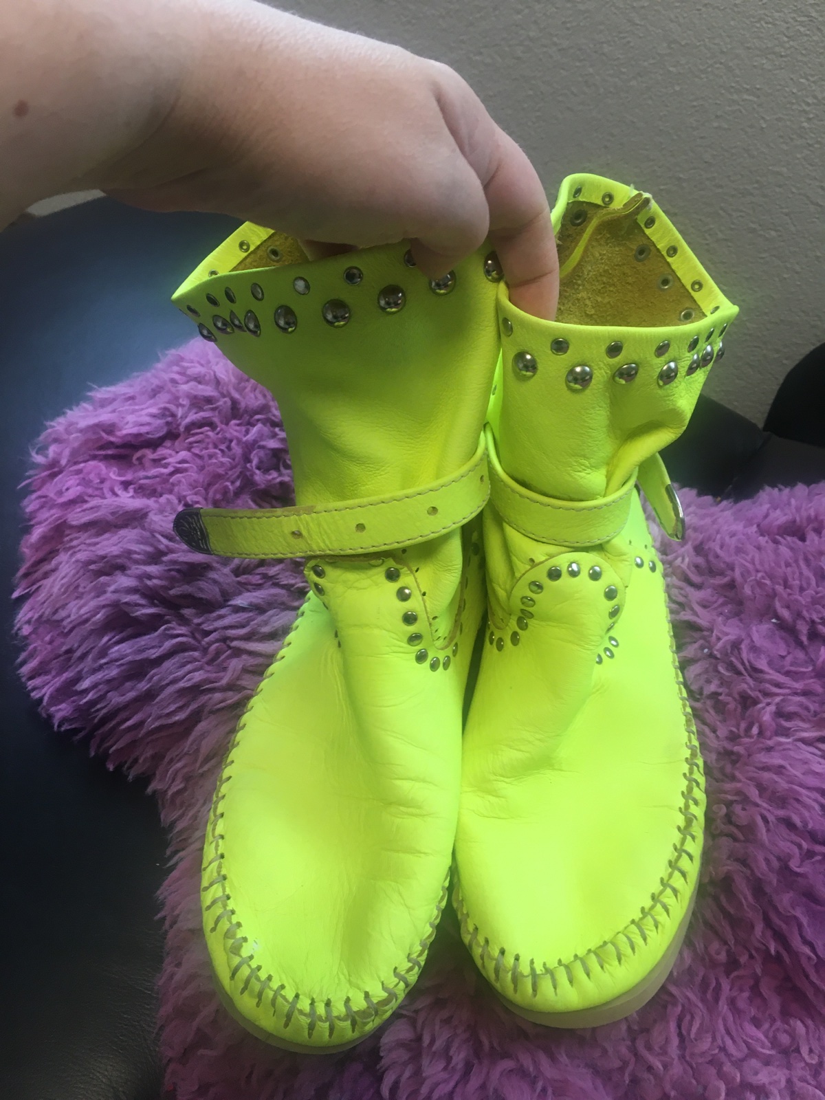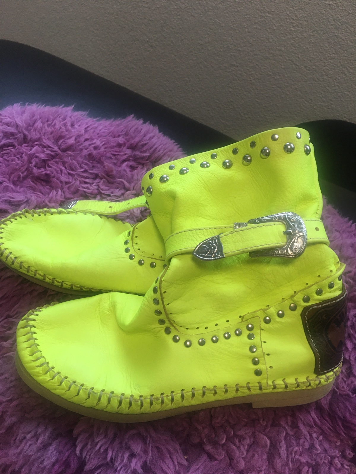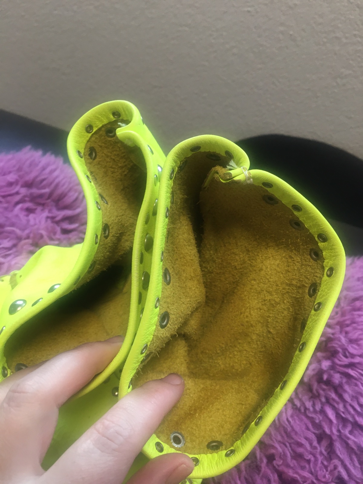 Neonovo žlto zelene letne čižmičky z pravej koze vnut dĺžka 26,5 cm