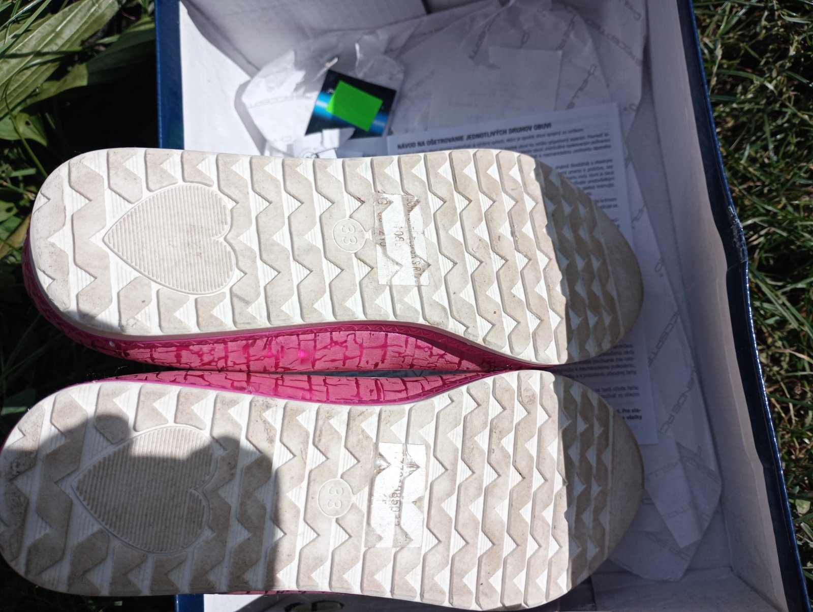 Predám dievčenské topánočky veľkosť 33. Na pravej je špic troch obitý.