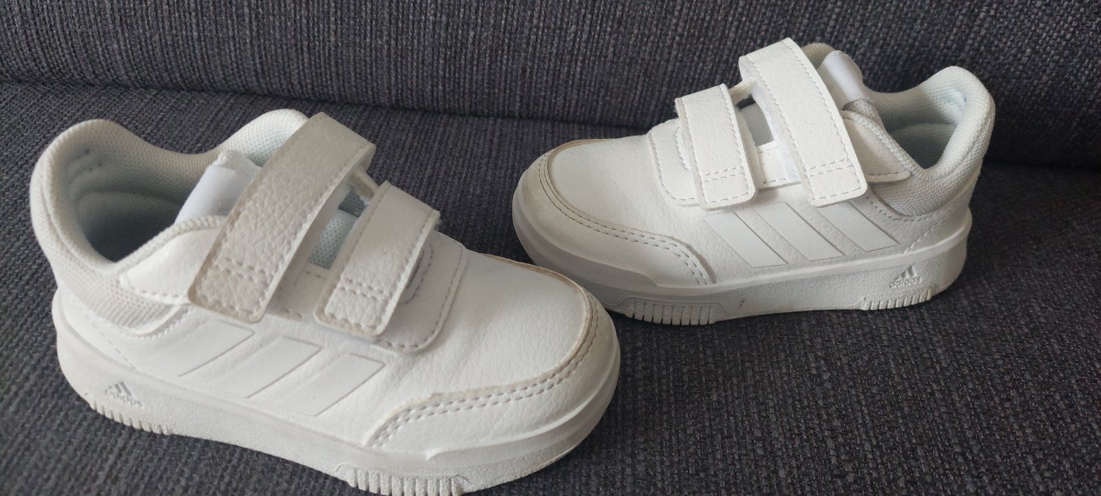Predávam Adidas tenisky po dcérke veľkosť 25 1/2, nosila ich len cca mesiac. Na látkovej časti sú sem tam svetlohnedé fľaky na jazyku a zadnej časti, čo ani nevidieť, keď ich má dieťa obuté. Zozadu...