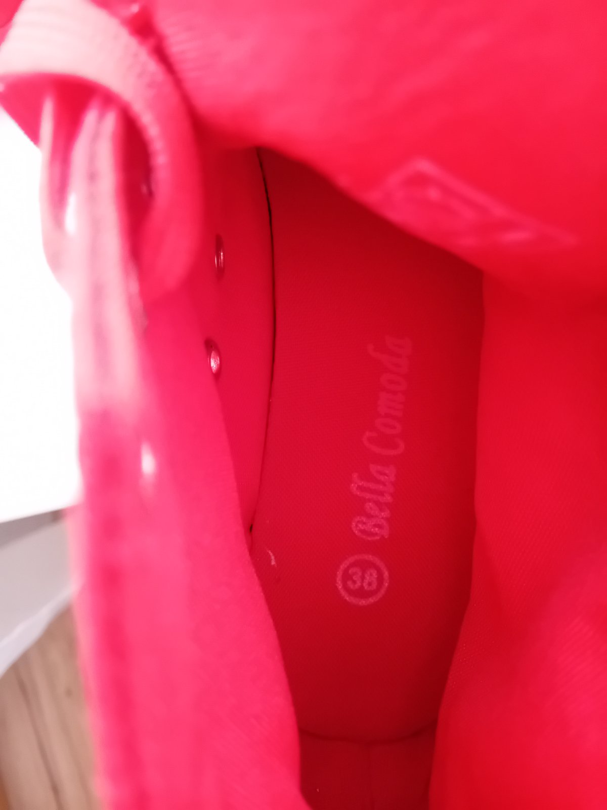 Sýta vinovočervená farba. Nemajú fľaky, na foto su vpredu len tiene. Stav podrážok na foto. Nosené veľmi krátko v telocvični. Posielam aj Packetou