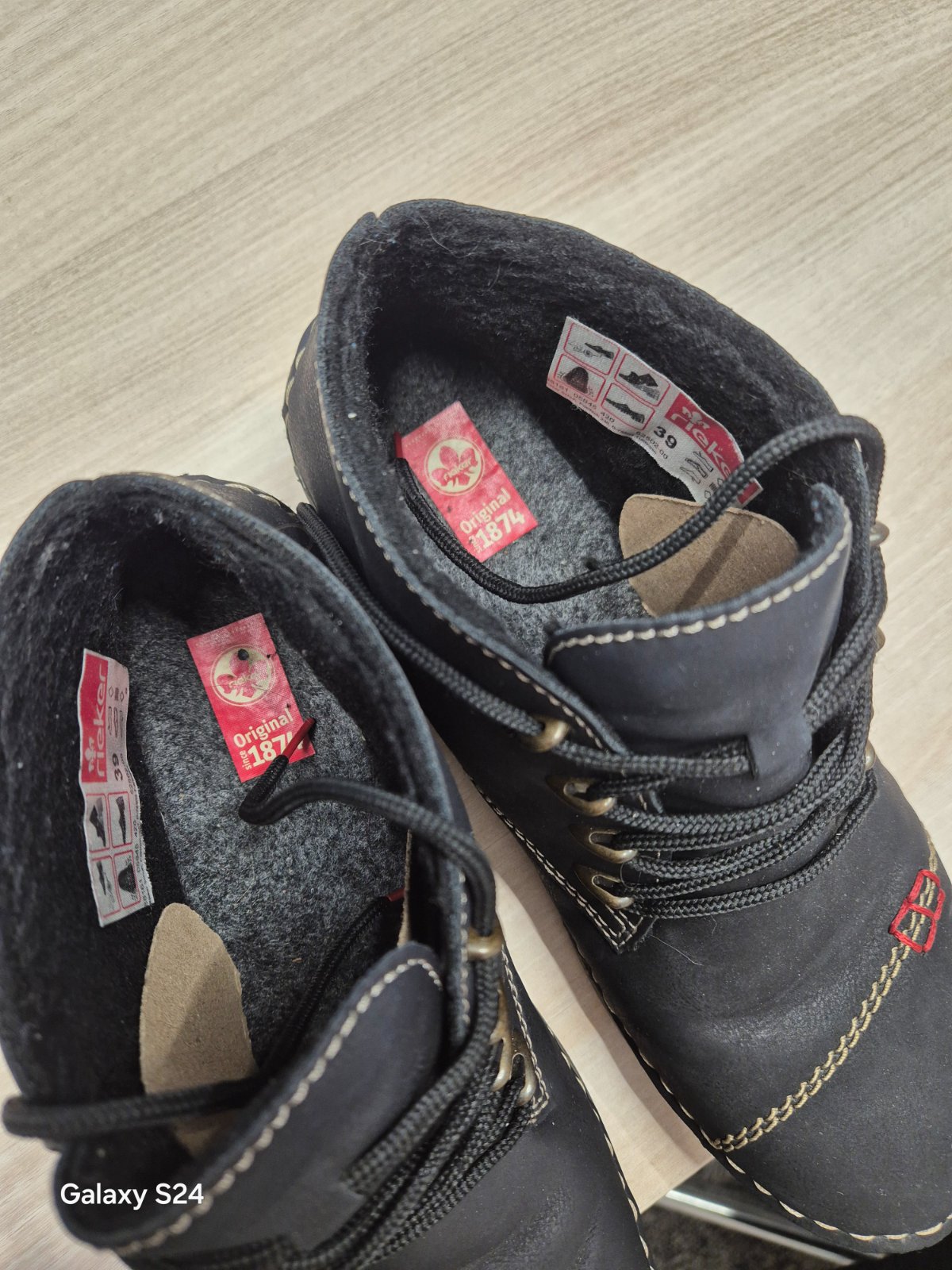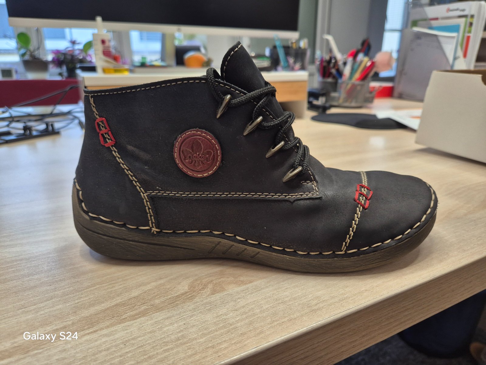 Rieker kozene topanky vo vybornom stave (vid. foto). Nosene malo, iba na par pracovnych meetingoch. Po tehotenstvach sa mi zial zvacsila noha a uz ich neobujem. Su velmi pohodlne, maju 5.5 cm opato...