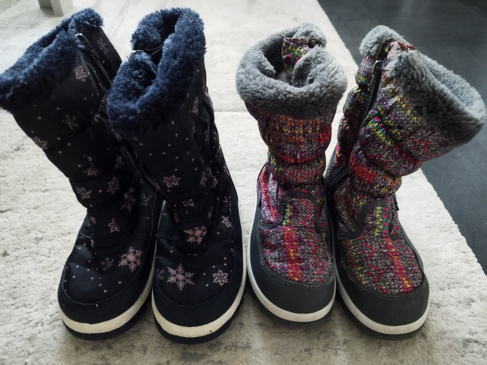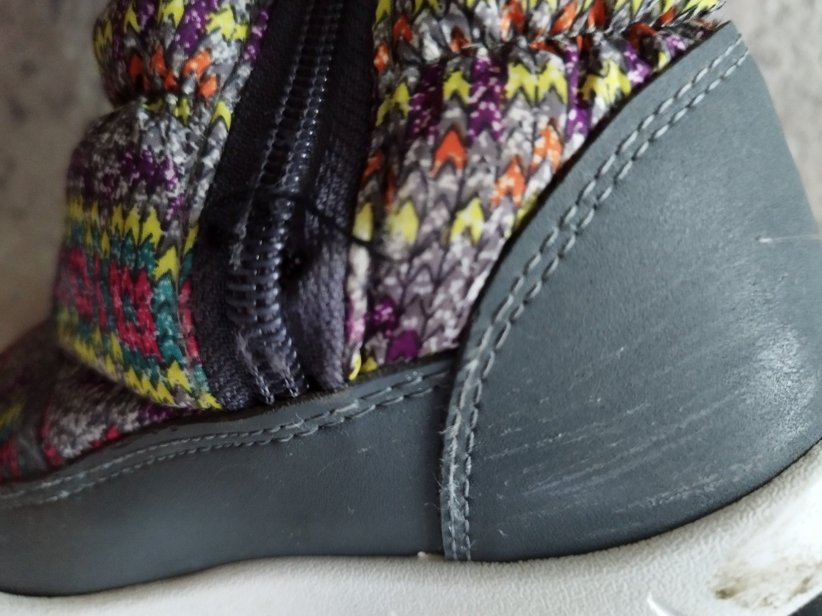2x cizmicky, VD 19cm, tie sive farebne mali prichyteny trochu zips lebo dole je na kusku odparany, aby to neslo dalej, no odparalo sa to, odporucam prichytit a asi natriet zipsy indulonou
