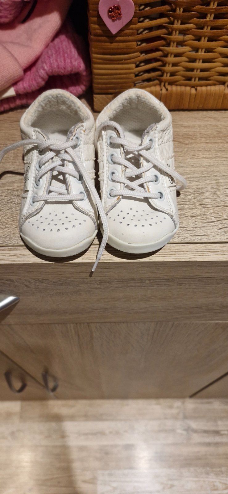 Celokozene topánky, vnútorná dlzka približne 12 cm, nedá sa vybrat vlozka, na jednej nohe sa okopali, ale nic strasne, velmi lahke topánky , vhodne na prve kroky. Môžem odporučiť.