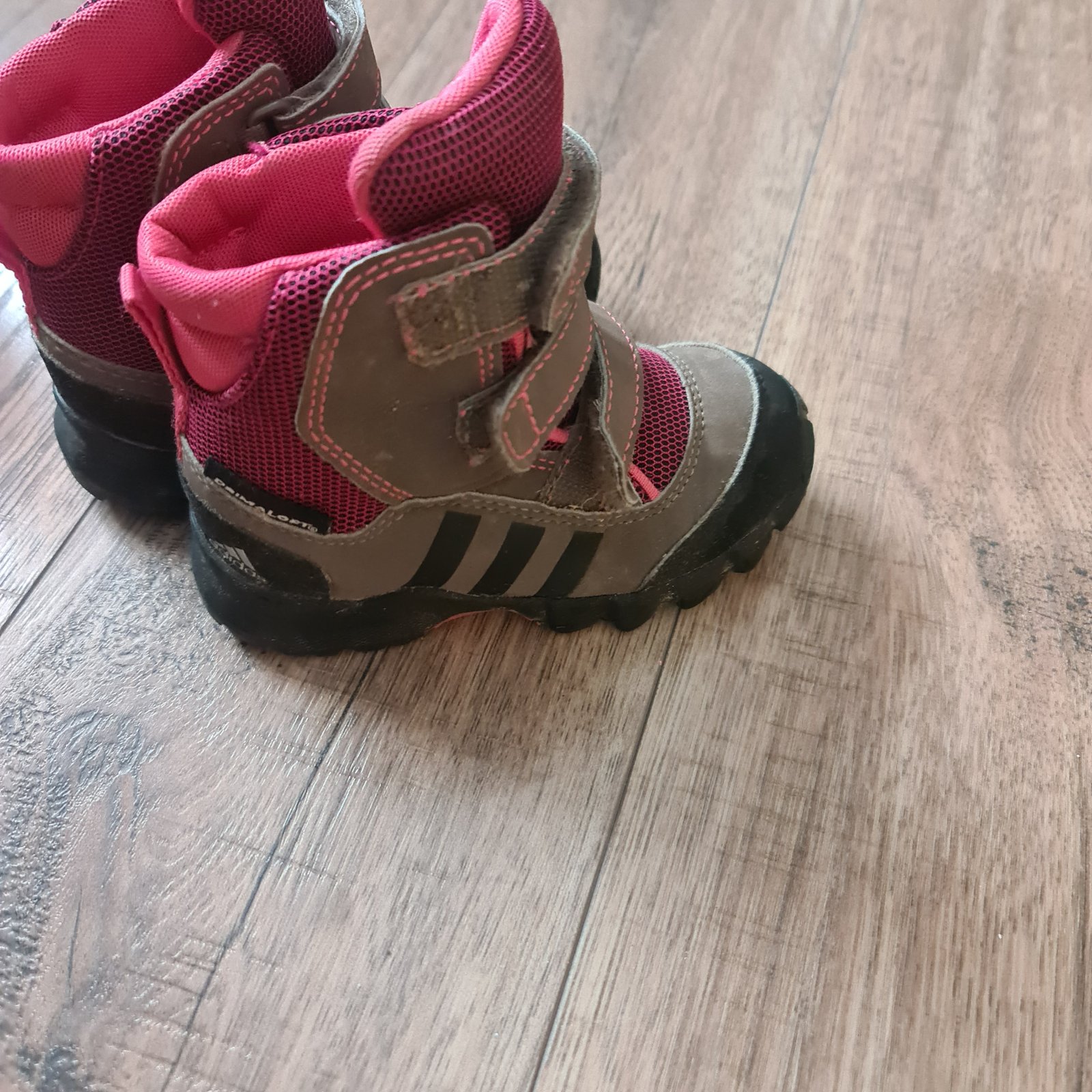 Detske zimne adidasy nosené jednu zimu keď sa dcéra učila chodiť, vpredu sú suchnute, je to na fotkách. Inak sú ako nové, nosila ich na striedačku