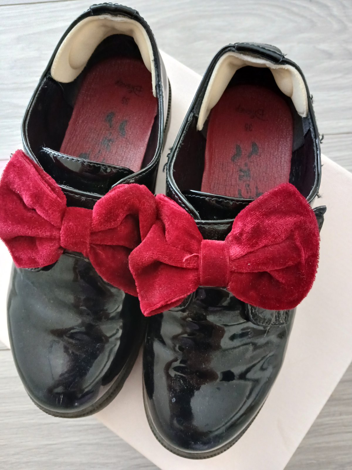 Ponúkam čierne kožené topánky, veľ.35, málo nosené, vnút.dlžka 23 cm. Cena 5 + pošta