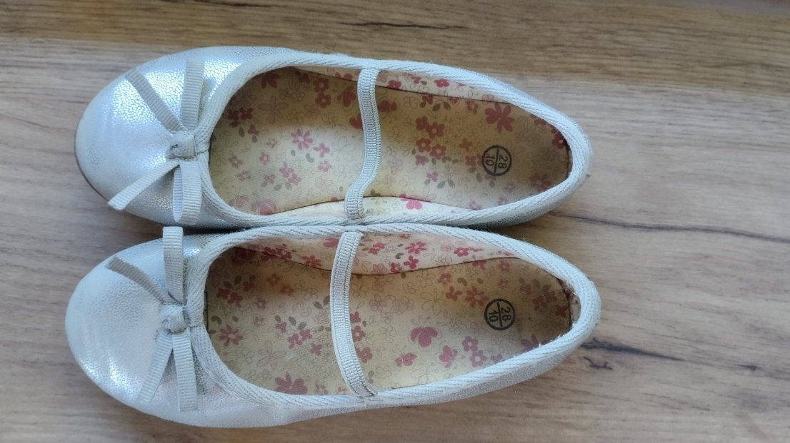 Dievčenské baleríny strieborné, zn. Deichmann, veľkosť 28, vnútorná dĺžka 17 cm.