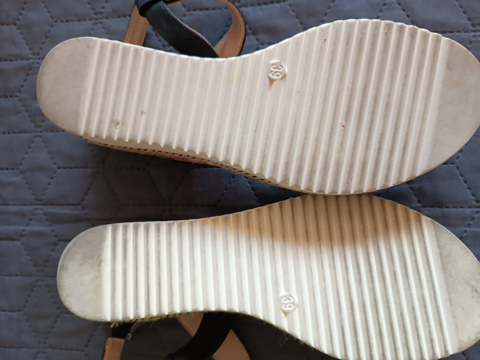 Veľmi dobrý stav, veľkosť 39. Vnútorná dĺžka 25,5 cm. Výška platformy vzadu je okolo 5,7 cm. Cena 6 eur plus poštovné.