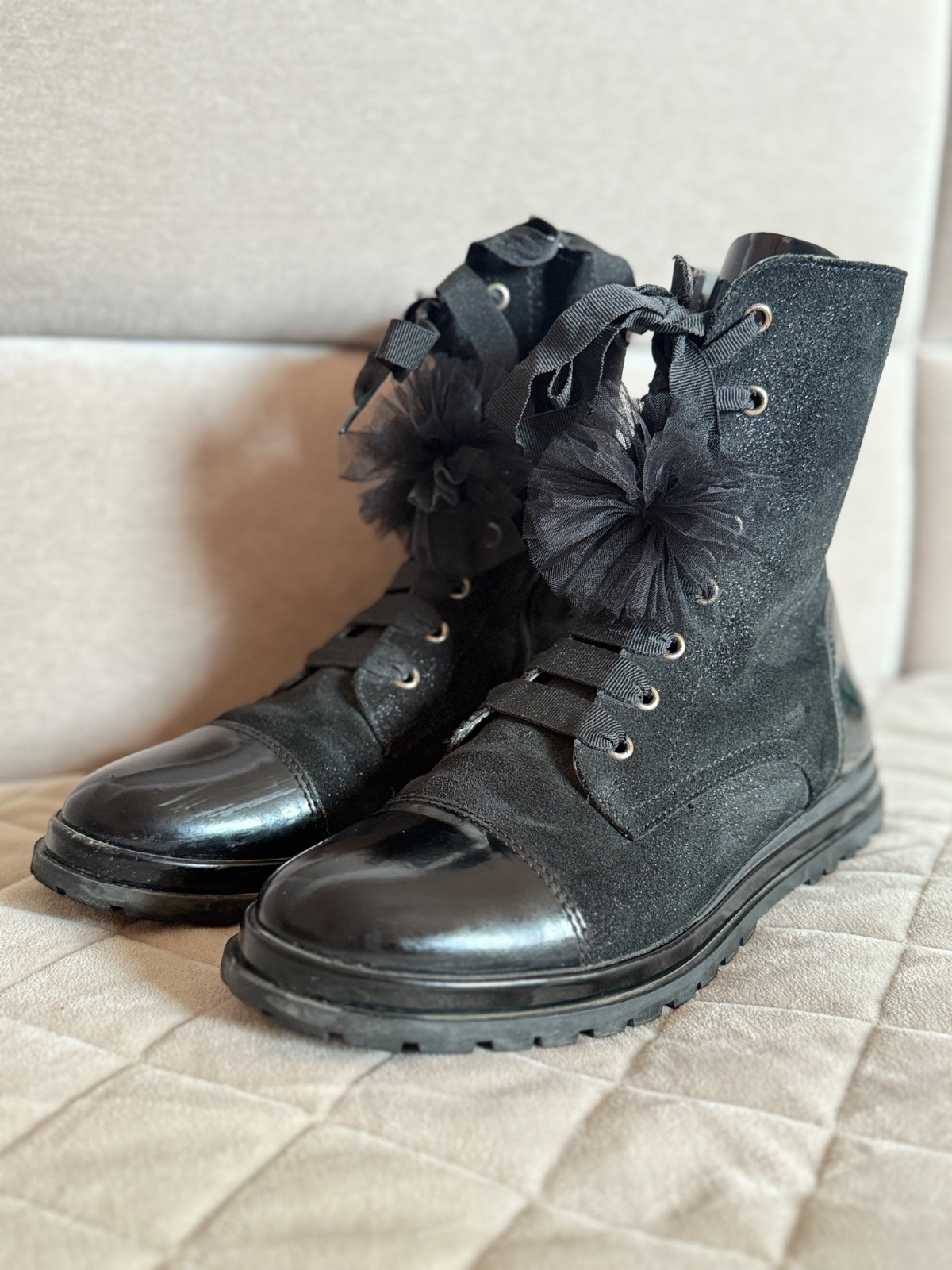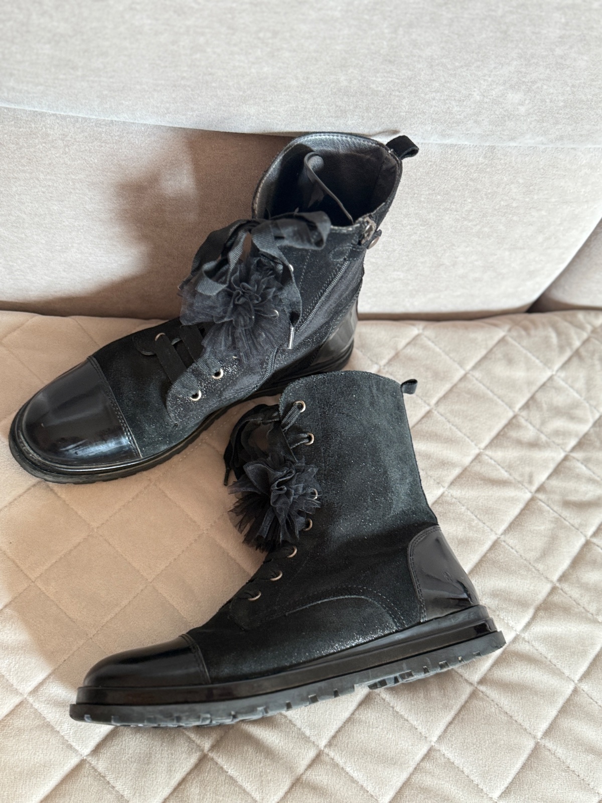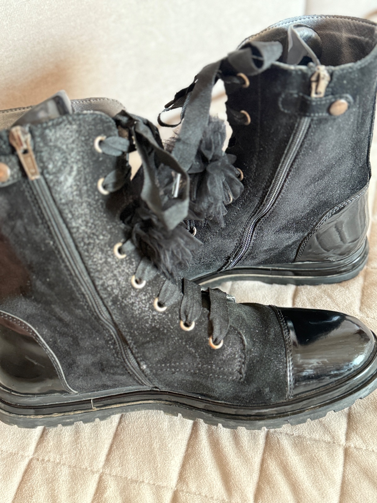 Vysoké čižmy, skoro nenosené. Na vrchu na šnurovanie, veľmi pekne. Top stav.