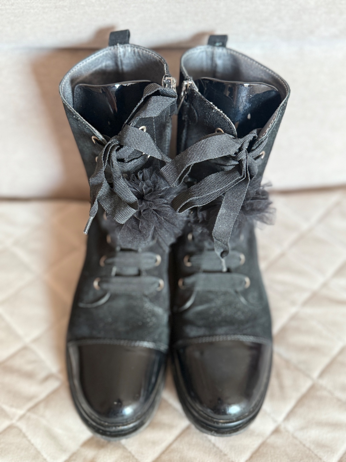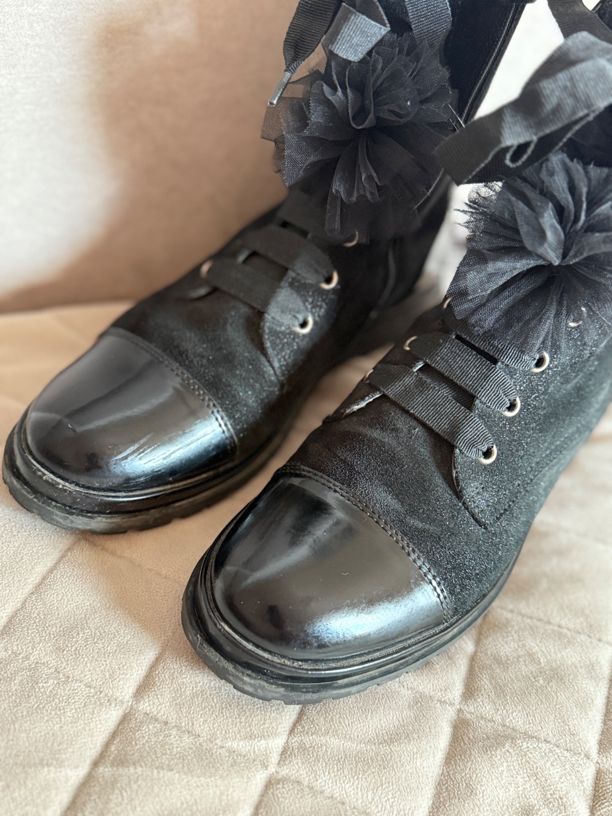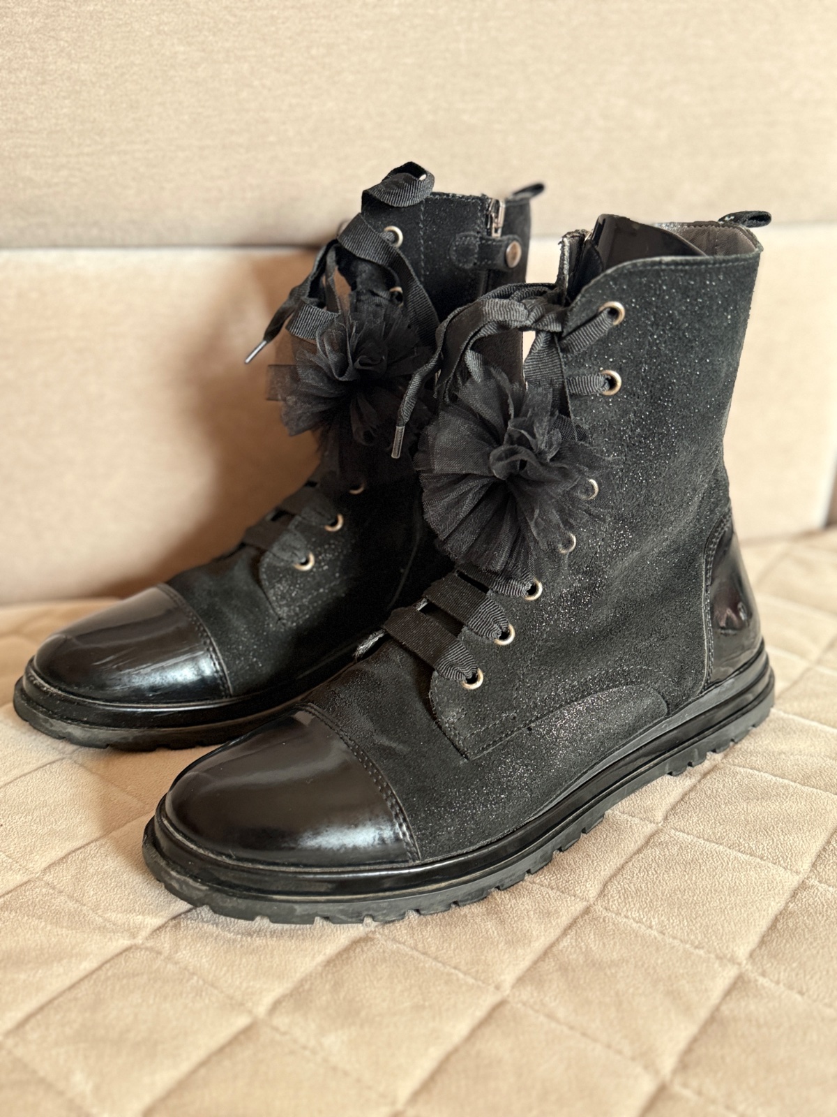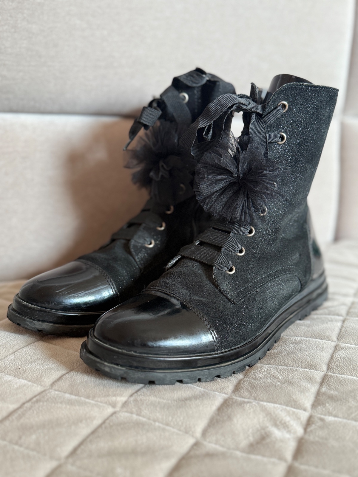 Vysoké čižmy, skoro nenosené. Na vrchu na šnurovanie, veľmi pekne. Top stav.