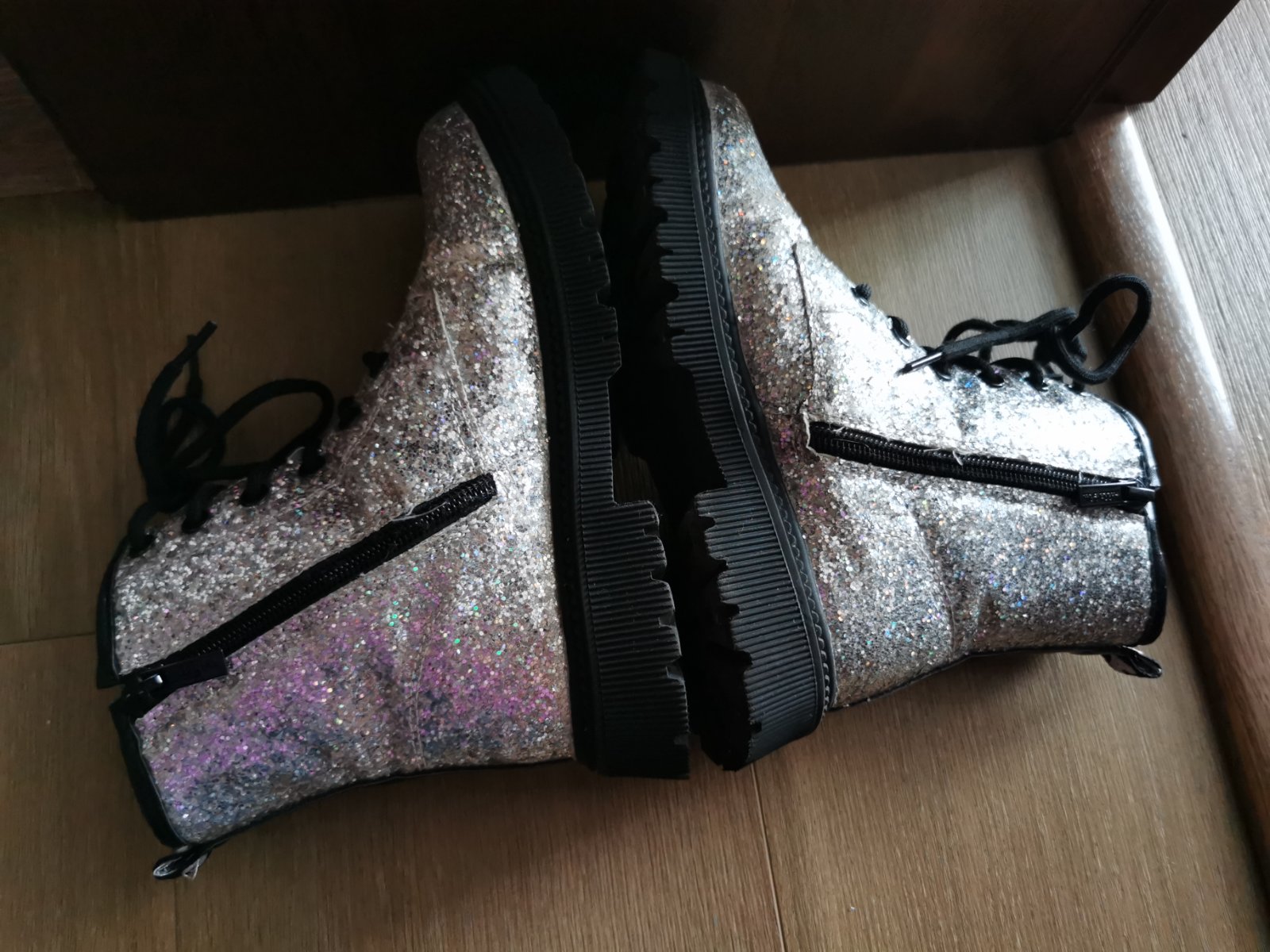 Pekné strieborné topánky v dobrom stave. Vnútorná dĺžka je 19cm, pošta v cene.