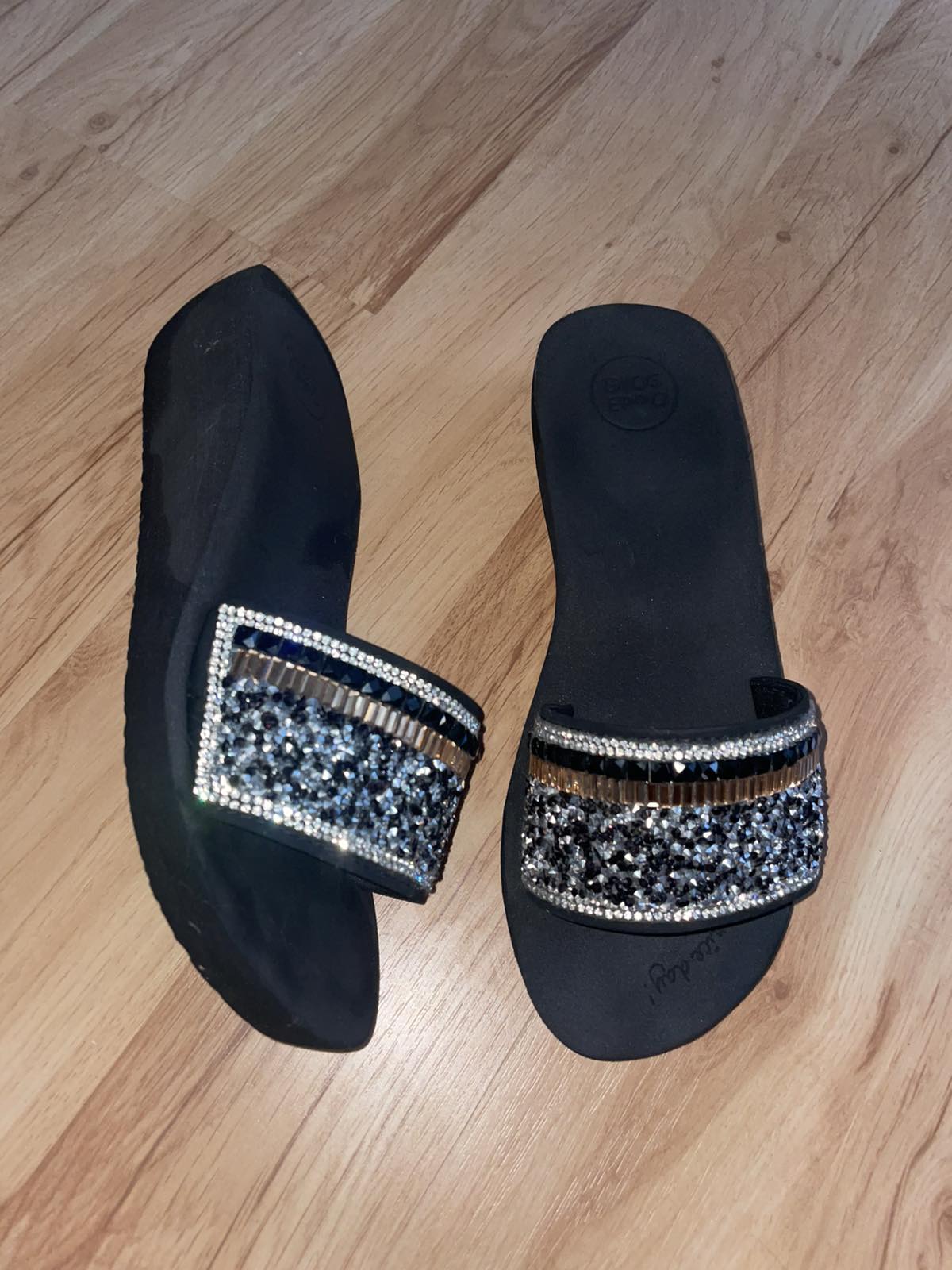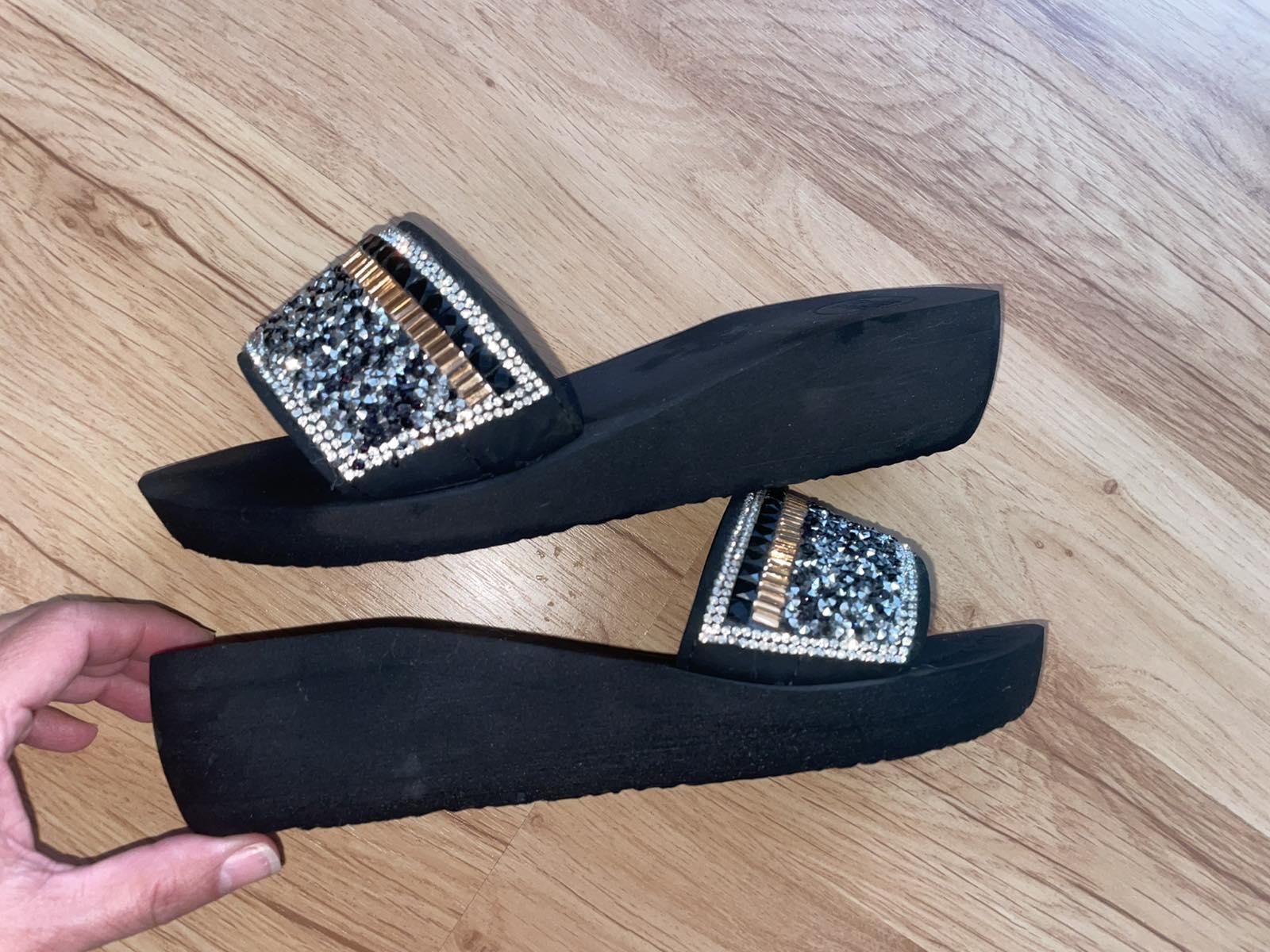 Minimálne nosené čierne penové vsuvky, extra pohodlné, kamienkové, sedia na veľkosť 38,vnútro úplne nadoraz 25 cm