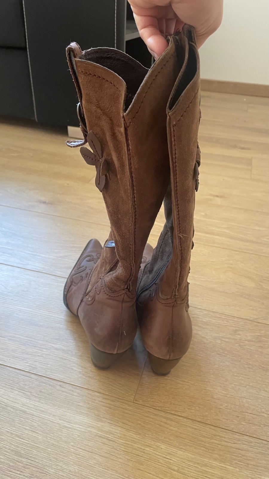 Predam asi 2x obute tmavohnede semisove cizmy. Vnutro s jemnou kozusinkou, velkost 39. Neosuchane, neobite opatky, ako nove. Osobny odber BA III, alebo plus postovne.