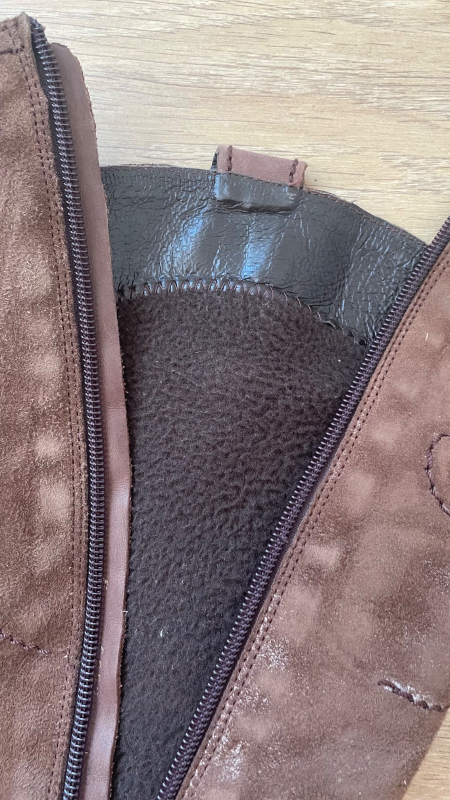 vysoké kožené čižmy na klinovom opätku, tmavohnedej farby, taliansky dizajn, vnútro kombinácia kože a synt. kože, nie sú oteplené, skôr na suchú zimu, alebo chladnejšiu jar, jeseň, bez poškodení