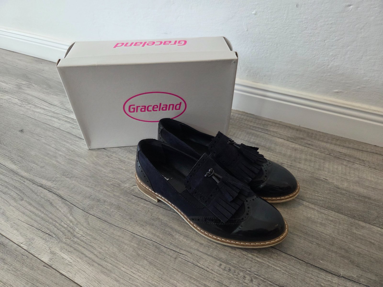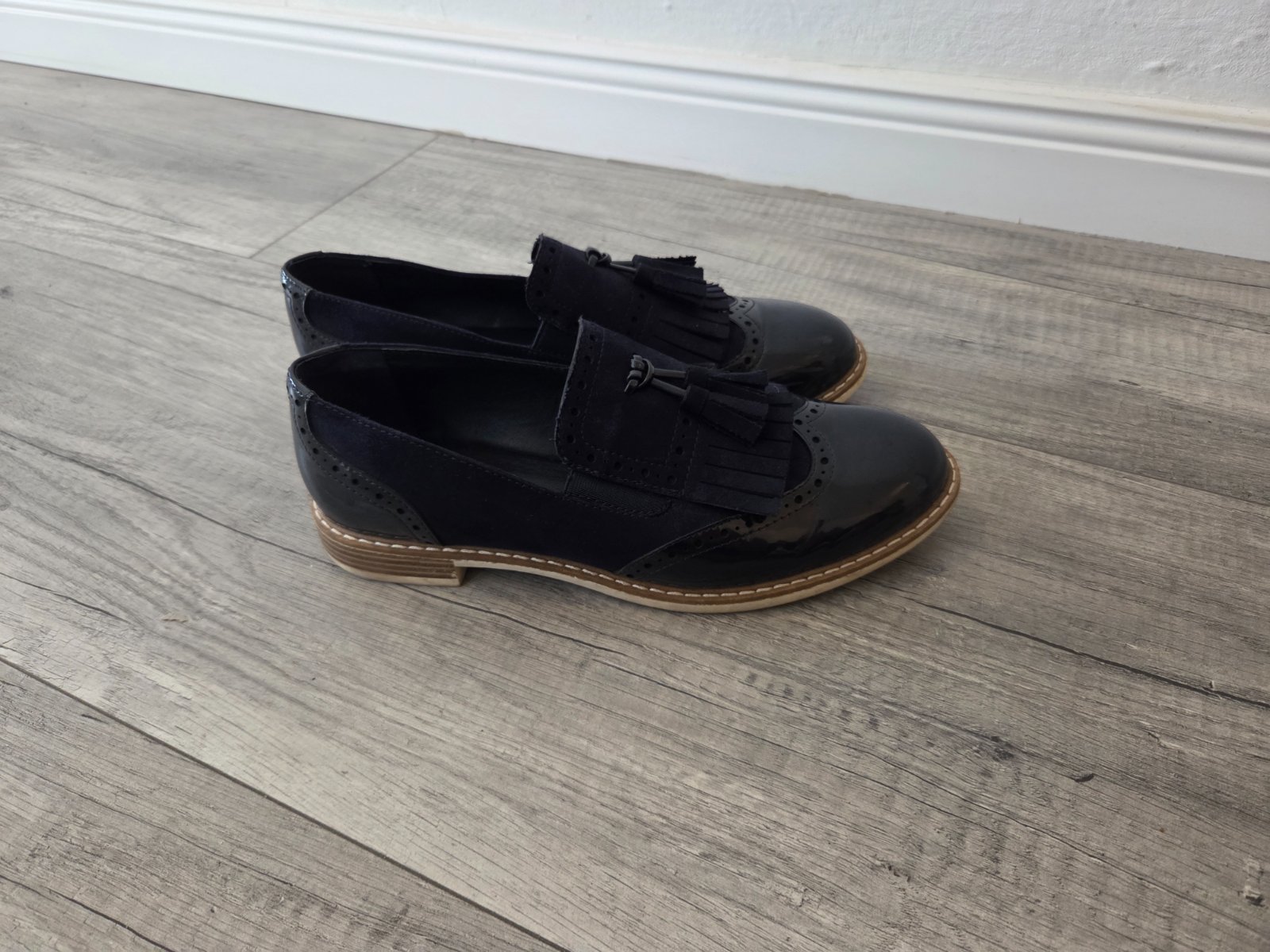 Štýlové mokasíny dvoch materiálov, pár krát obuté.