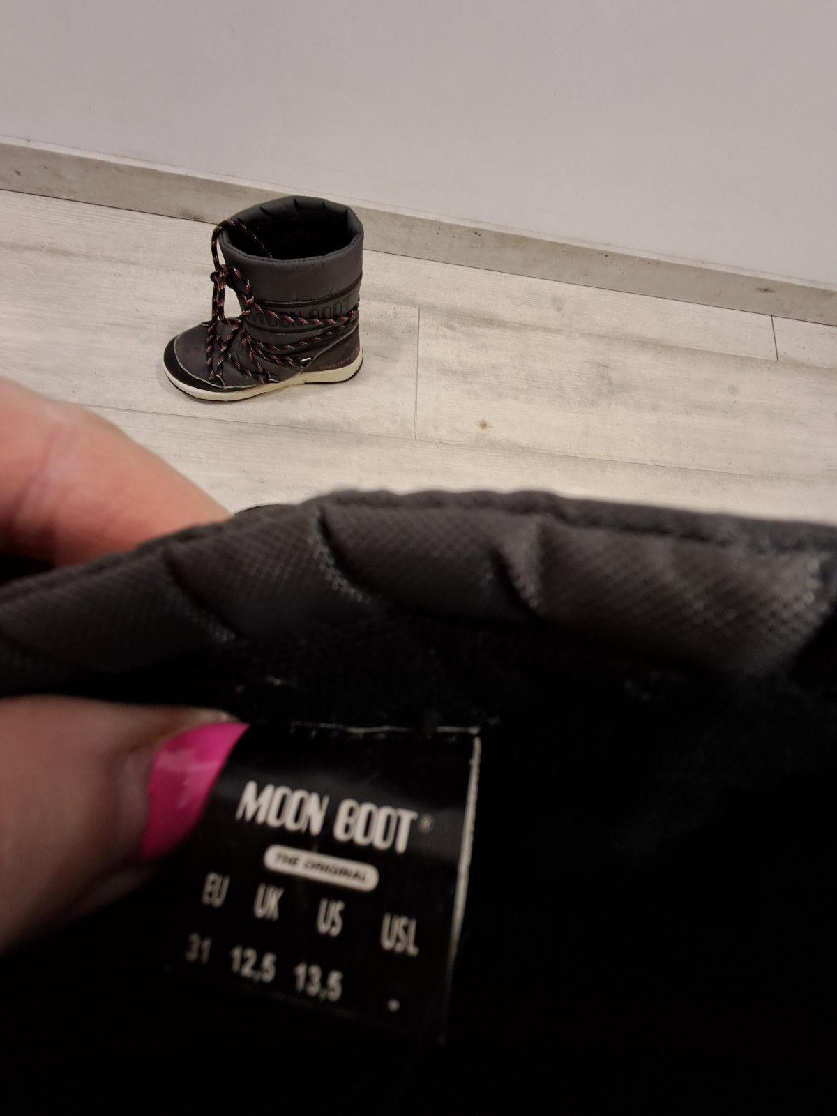 Predám vodeodolné snehule zn. Moon Boot pre chlapca, veľ. 31, VD 21 cm, na jednej ošúchaná špička, inak bez poškodení, vhodné skôr na donosenie okolo domu.
